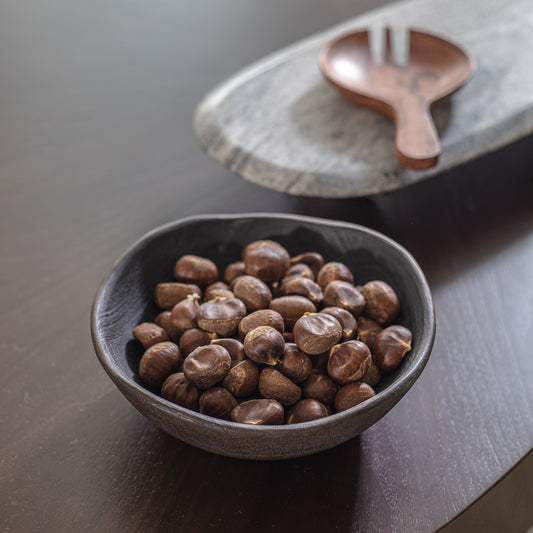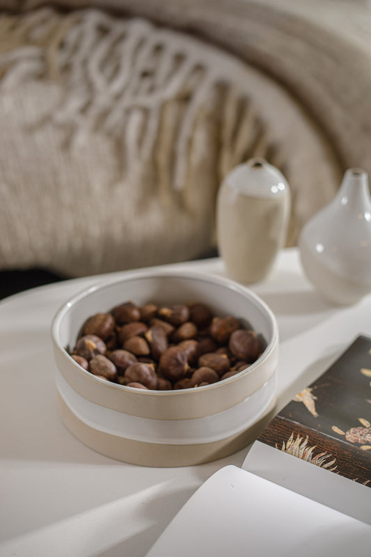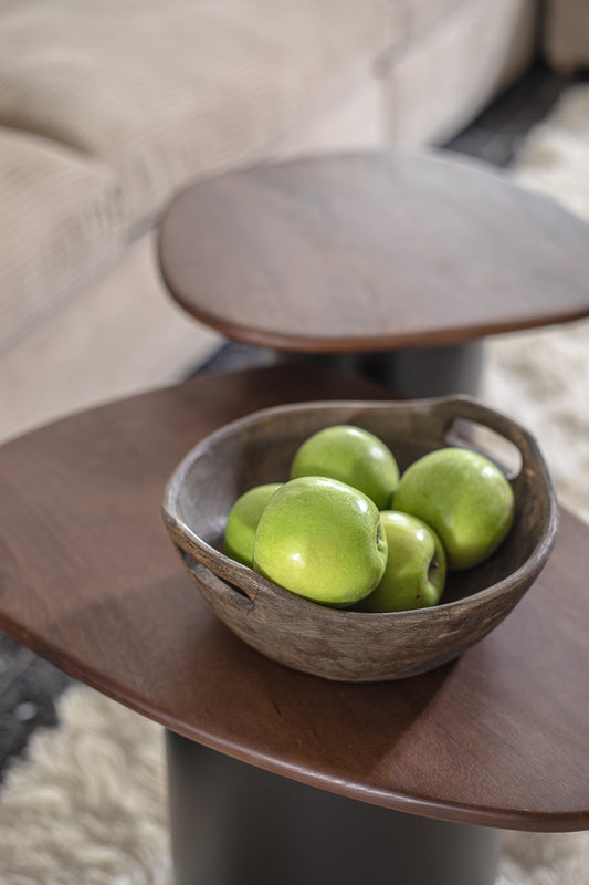 קערה עגולה ידית עץ פאודר ווייט