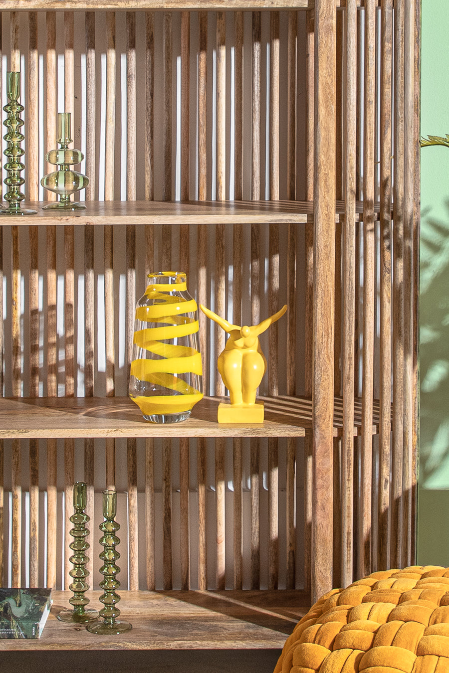 ארון מרגו עשוי עץ מנגו בעיצוב אותנטי. ארון פנורמי חשוף וממודף המגיע עם מעטפת פסי עץ צפופים. מראה הרהיט השלם נע בתפר שבין נוכח לנעדר.