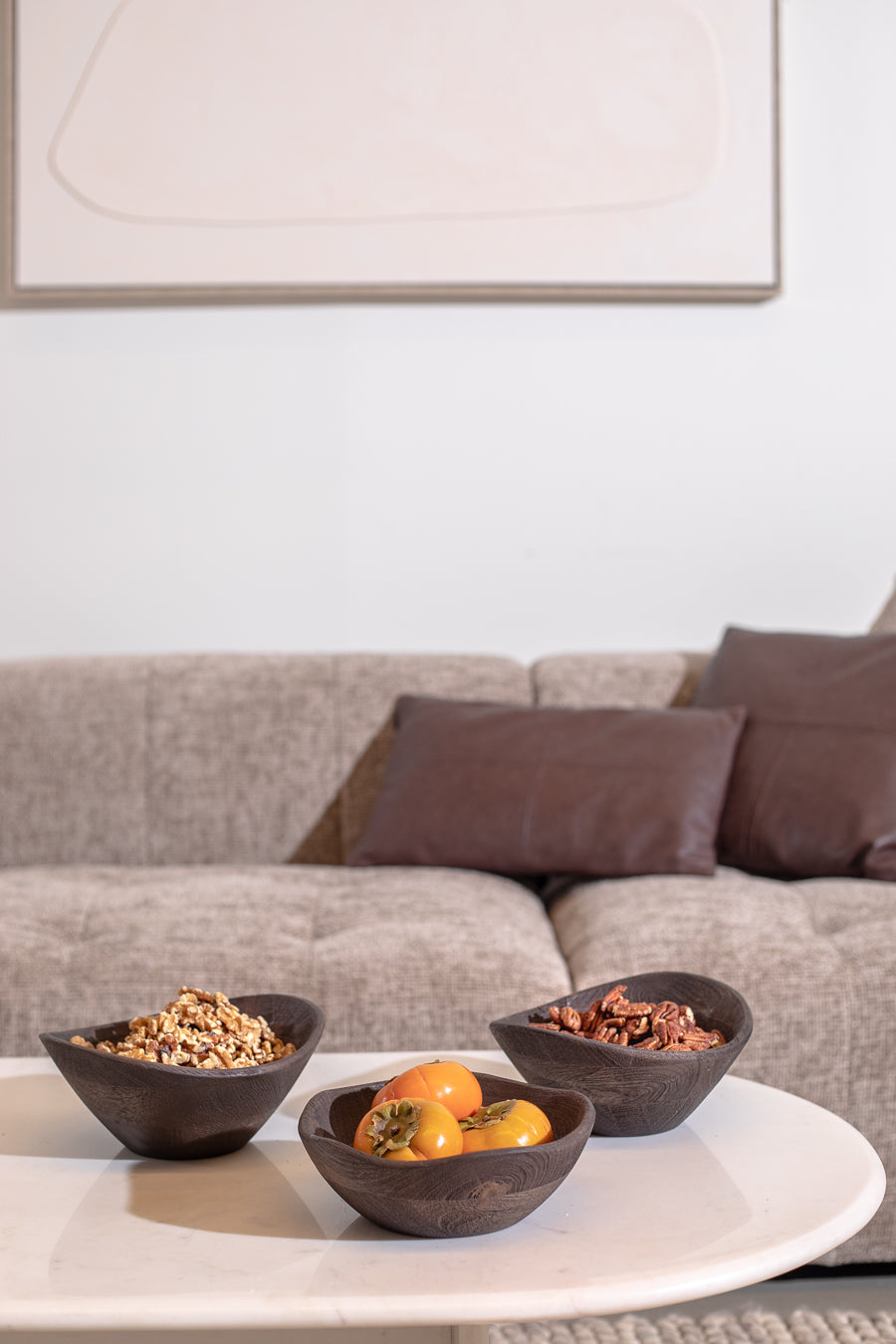 קערה עץ מנגו בול אורגניק פרופיל אובלי בגוון עץ כהה. קערה בעיצוב FINE קלאסי אשר תמיד שומרת על רלוונטיות. פריט הגשה זה הינו חלק מסדרת כלי הגשה "אורגניק".