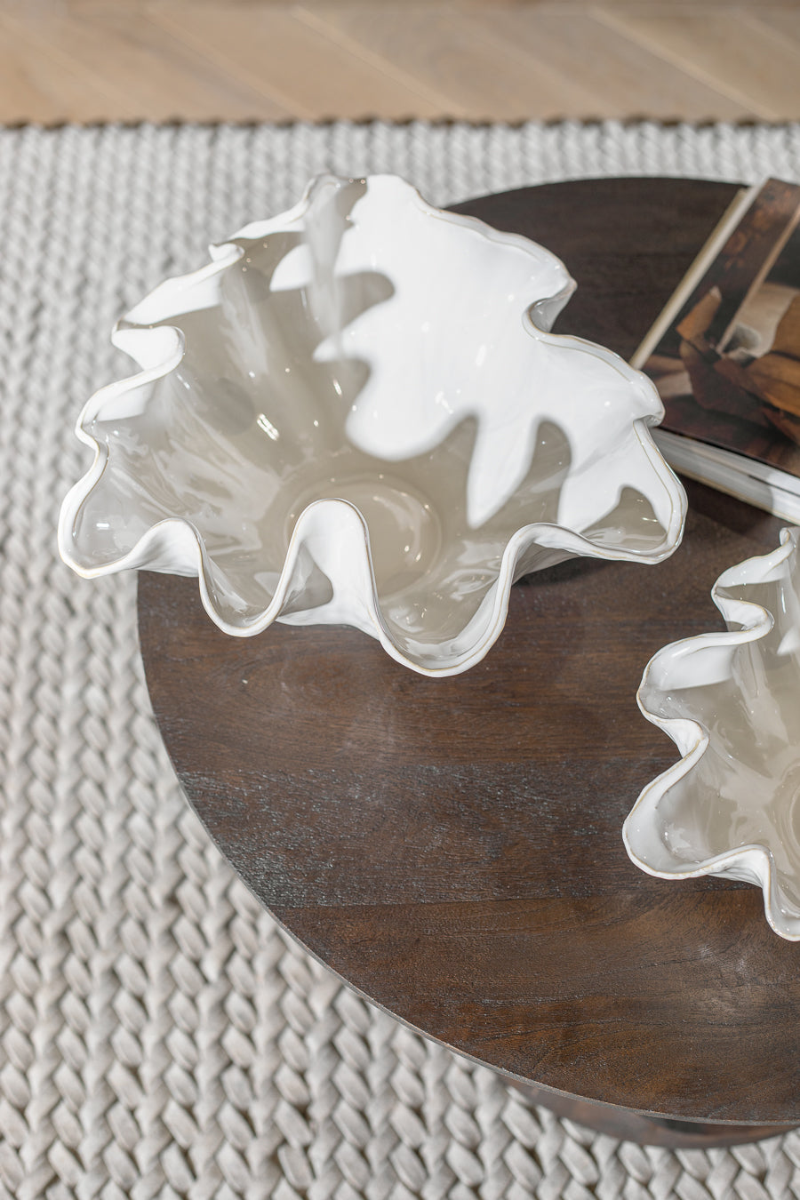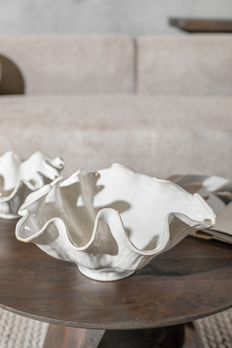 בול נאוטילוס בצבע לבן. קערת הגשה מפוסלת קפלים בגימור שייני.
