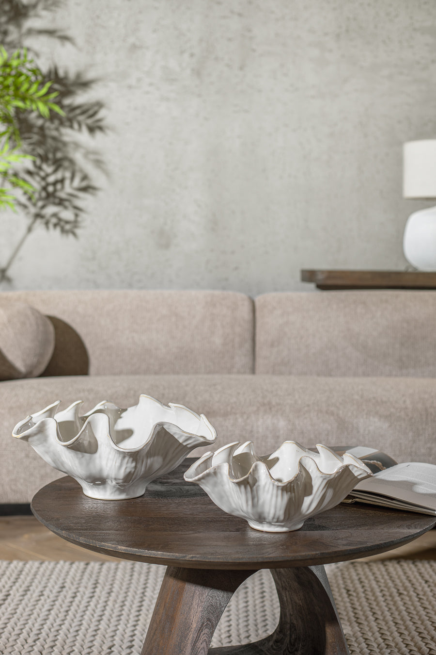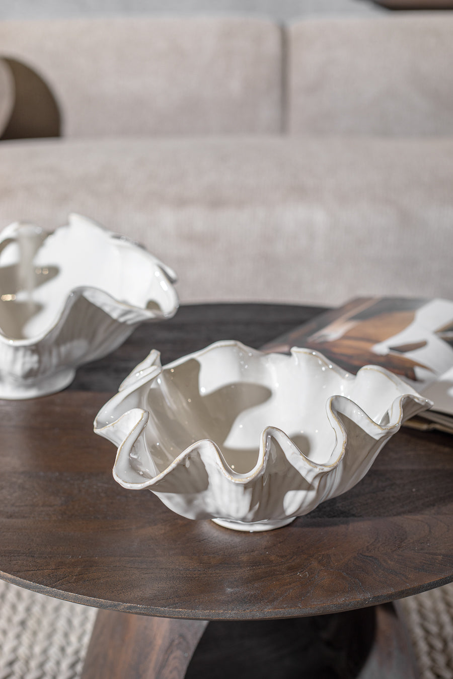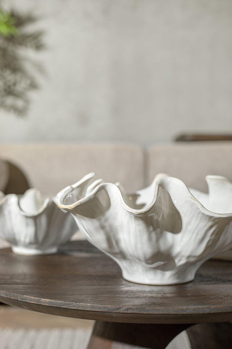 בול נאוטילוס בצבע לבן. קערת הגשה מפוסלת קפלים בגימור שייני.