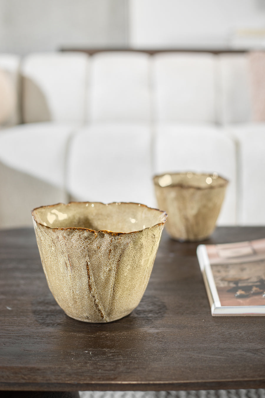 בול נאוטילוס בגוון חום. בול מפוסל קימורים אורגנים בגימור גלזורה שובה.