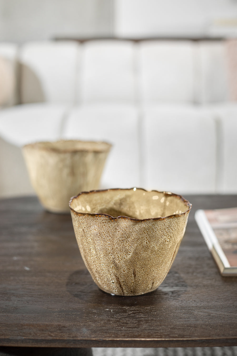בול נאוטילוס בגוון חום. בול מפוסל קימורים אורגנים בגימור גלזורה שובה.