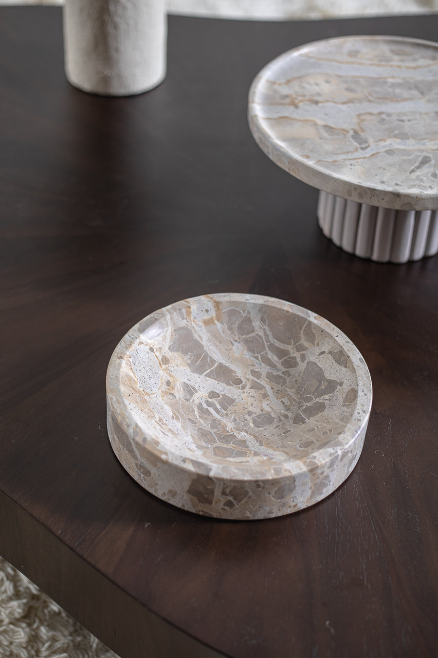בול צ'וקלאט מארבל במרקם אבן טבעית. קערת הגשה עגולה בעיצוב אלגנטי וגימור חלק.