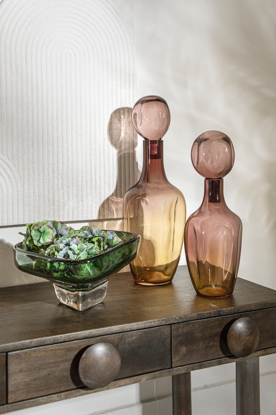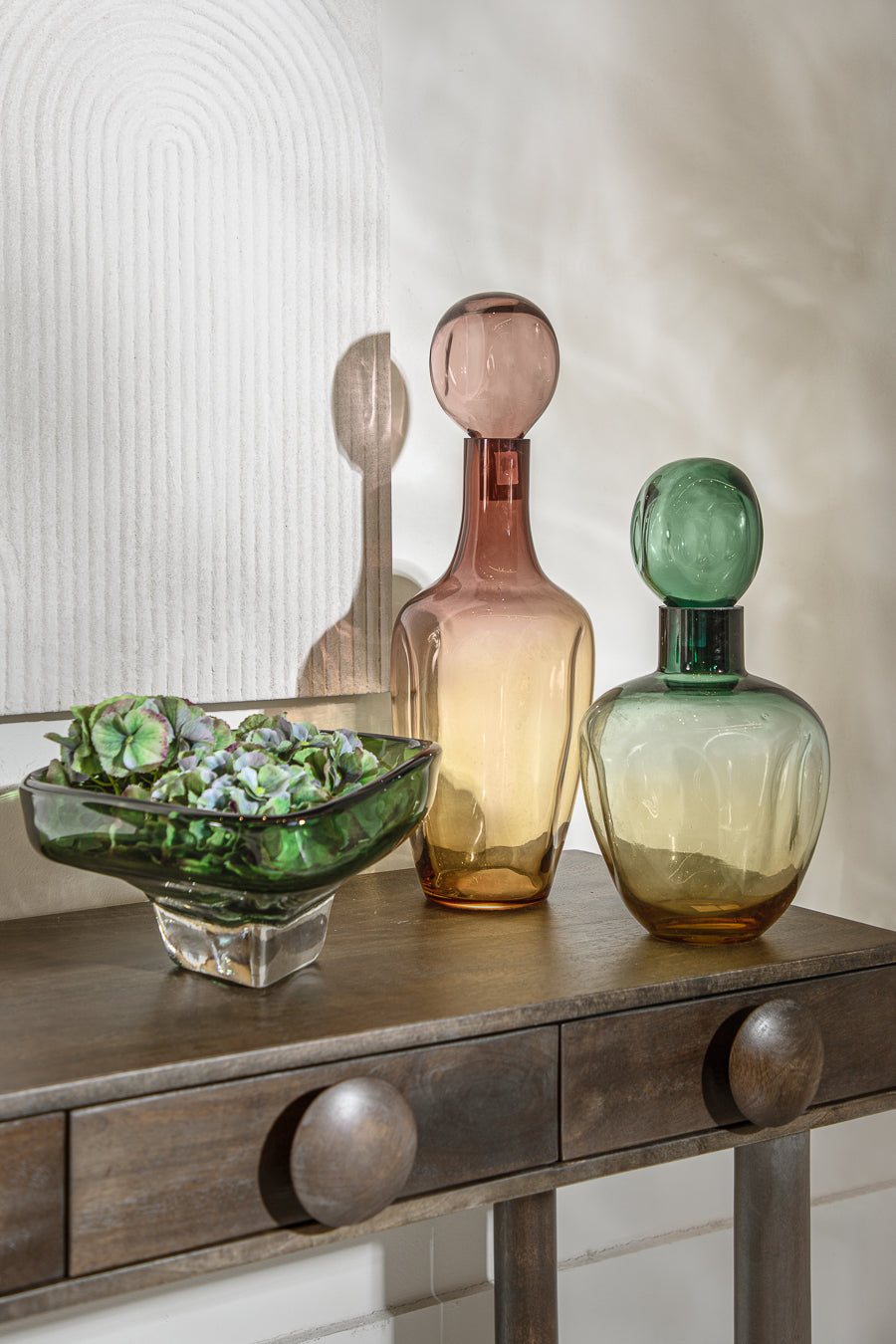 ואזה זכוכית פריזמה בגרדיאנט ורוד. אגרטל סילואט קלאסי בצבעוניות רטרו שובה.