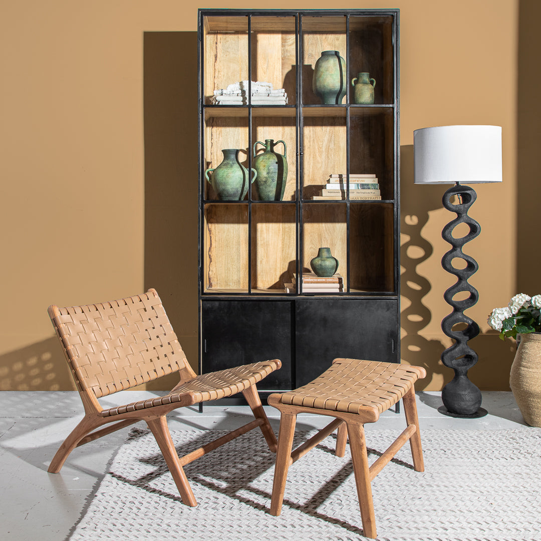הדום עור סוהו בגוון ניוד. הדום טרקלין מעוצב קליעת עור שתי וערב הנישא על רגליי עץ טיק. מתאים לאוהבי העיצוב הקלאסי. הדום זה הינו פריט אחד מסדרת רהיטי "סוהו" הכוללת מספר דגמים וגוון.