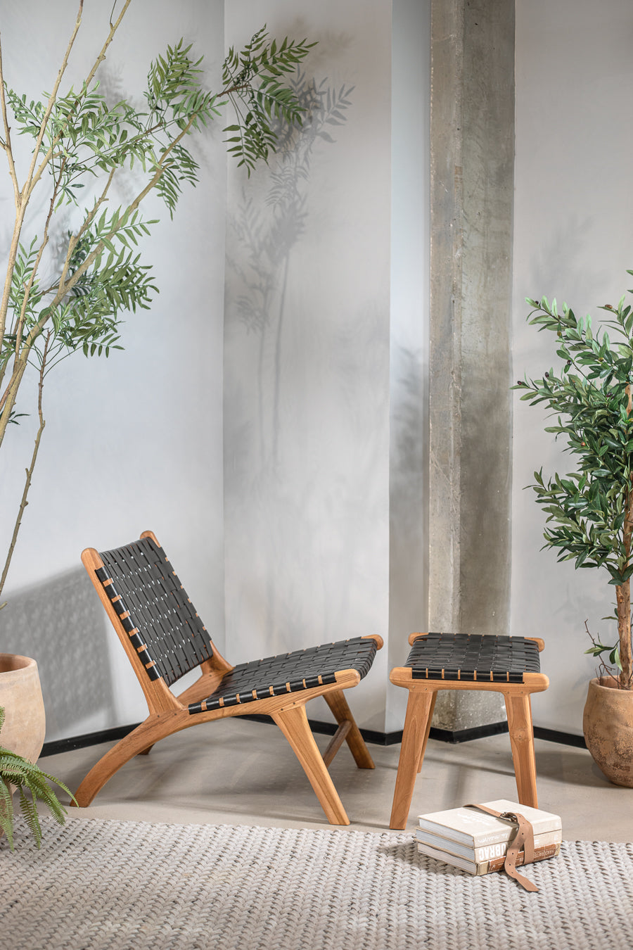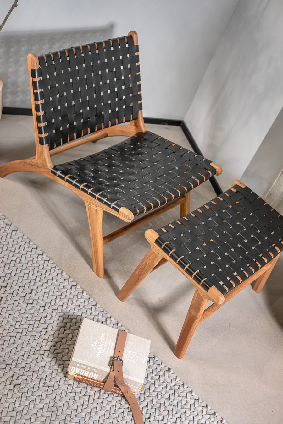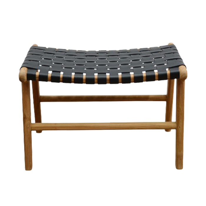 הדום סוהו בצבע שחור. הדום טרקלין מעוצב קליעת עור שתי וערב הנישא על רגליי עץ טיק. מתאים לאוהבי העיצוב הקלאסי.