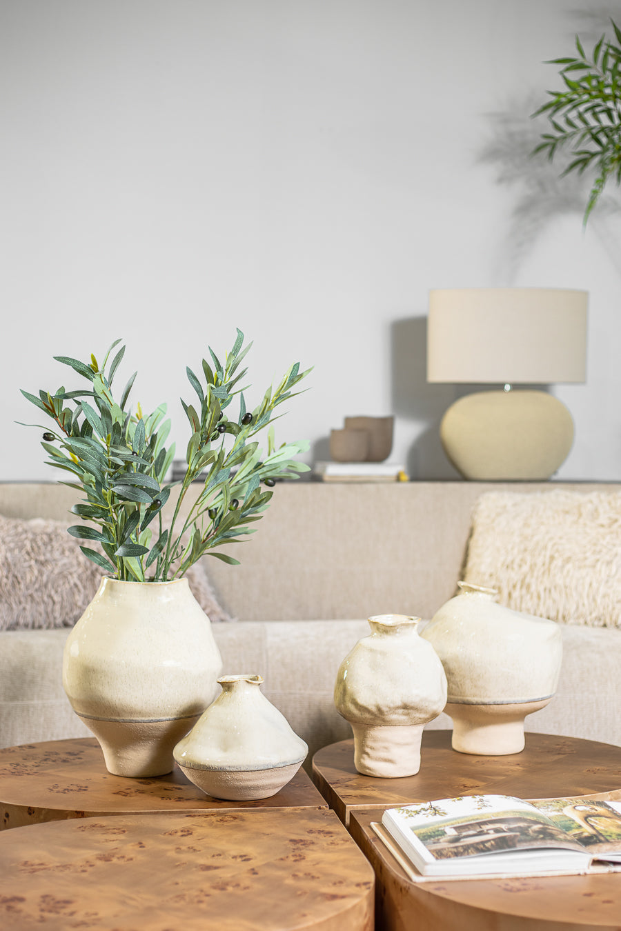 ואזה ארט אותנטית בגוון בהיר. אגרטל קרמיקה נישא בעיצוב המתכתב עם עולמות העת העתיקה.