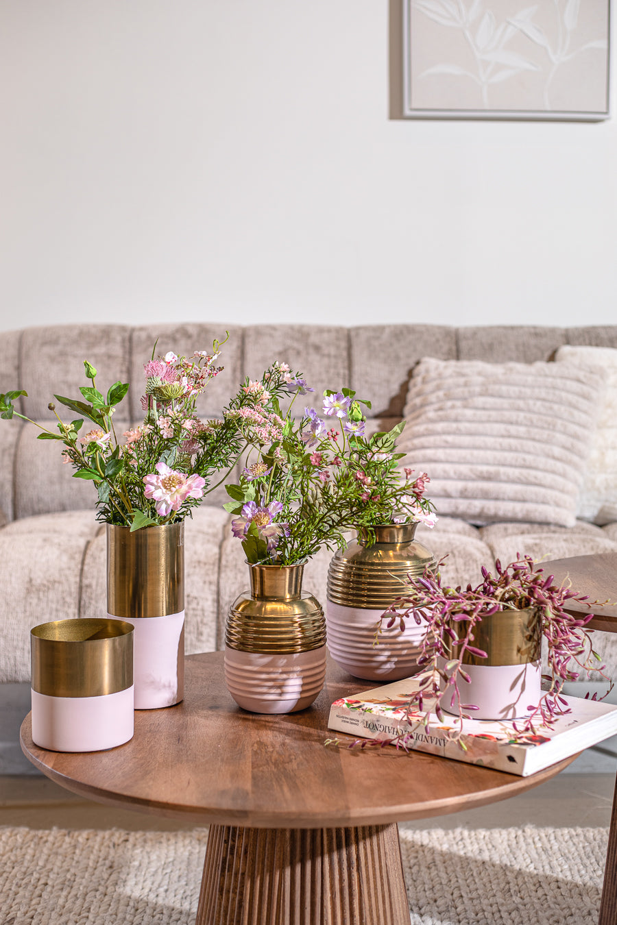 ואזה מתכת דאבל טון פרופיל עגול בצבעי בז' וזהב. אגרטל מדוייק, שילוב צבעים שובה בעיבוד פסים היקפי וסטייל תעשייתי. ואזה נדרשת לאיבזור חלל בקו אינטילגנטי.