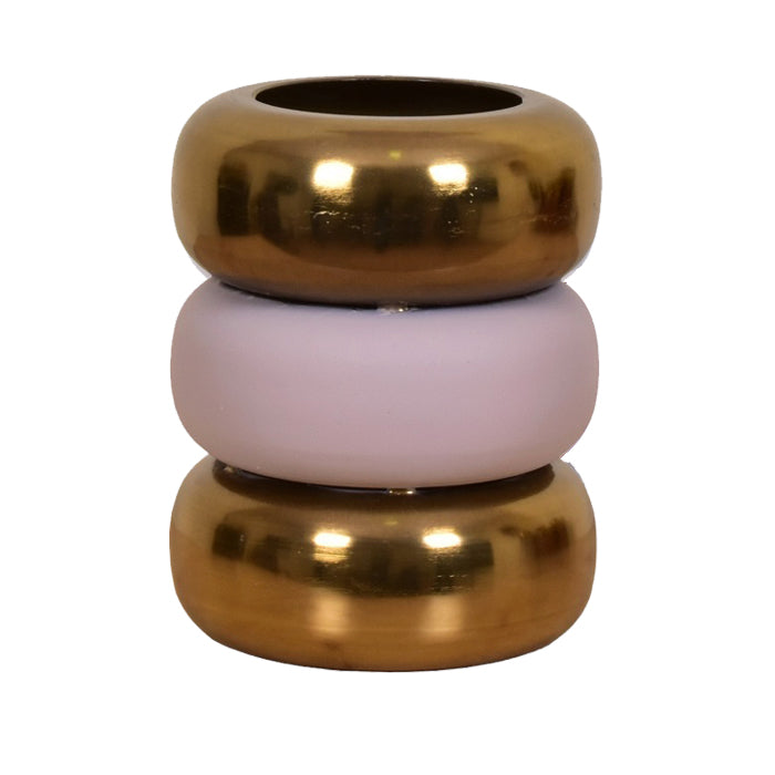 ואזה מתכת דאבל טון רינגס פרופיל גלי בצבעי בז' וזהב. אגרטל ייחודי מעוצב שלוש טבעות המחוברות לגובה בשילוב צבעים צעיר ועכשווי.