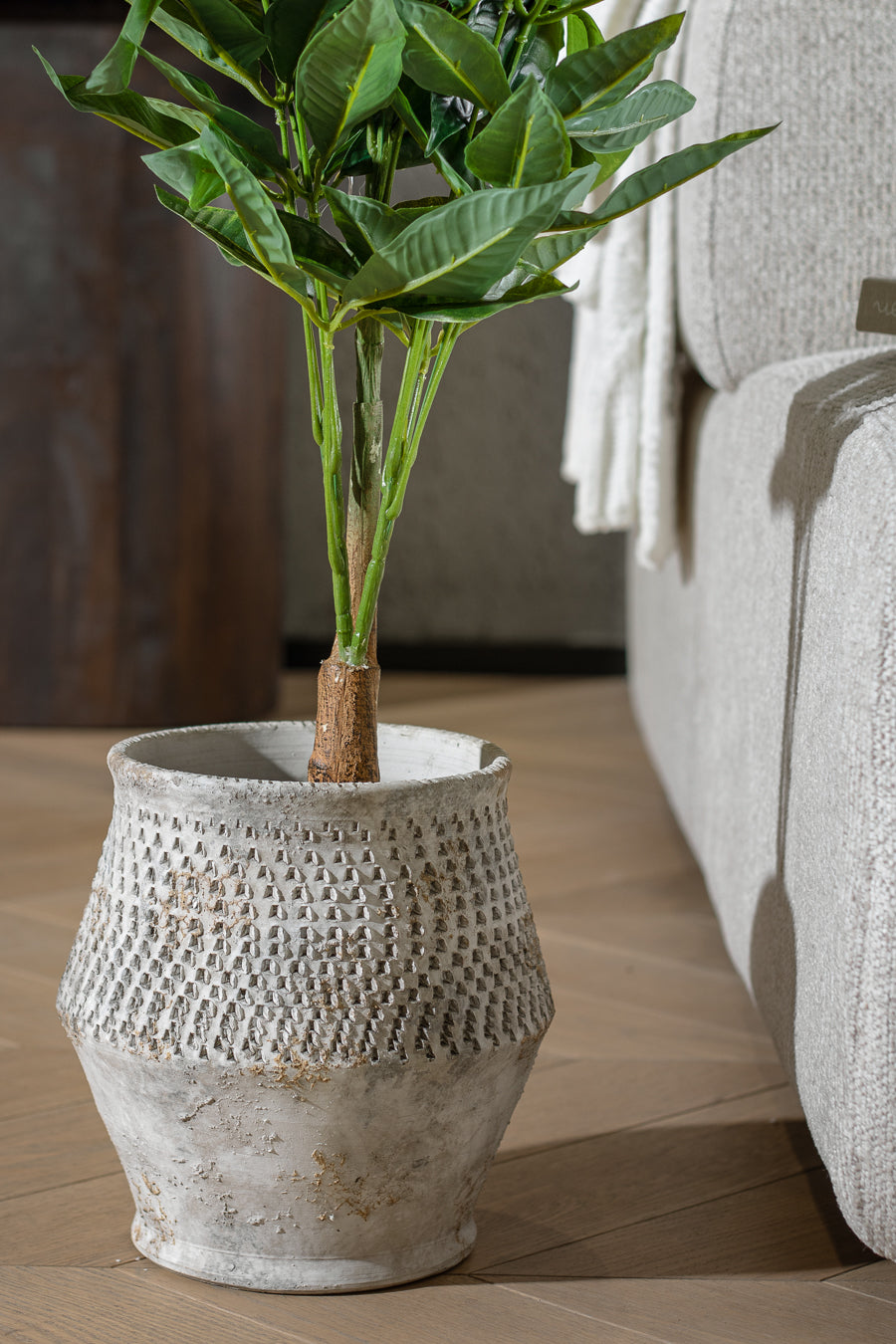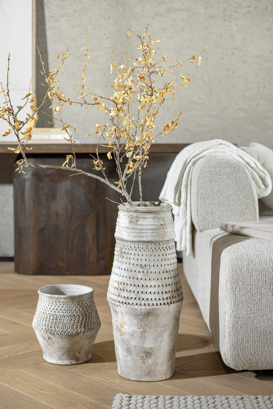 ואזה נבאדה אתנית בגוון אפרפר. גביע קרמיקה מעוצב אלמנט פיסולי בחומר.