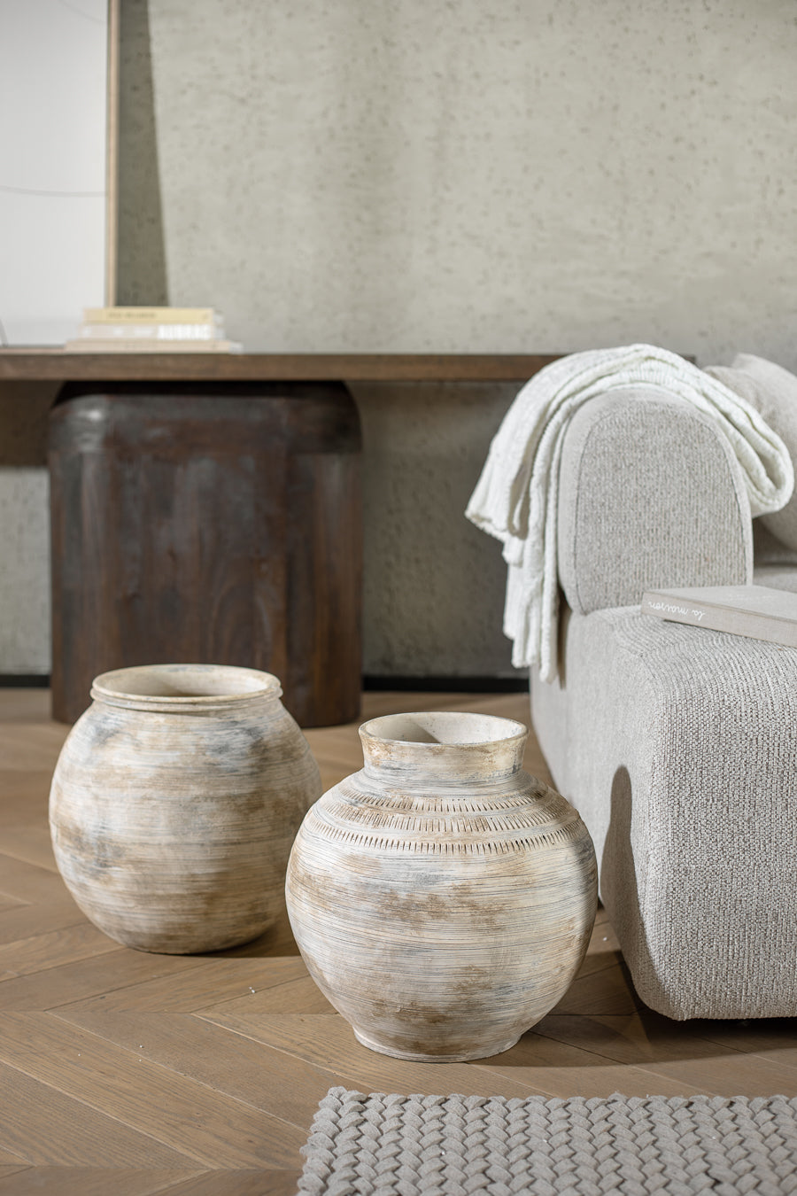 ואזה נבאדה עגולה בגוון חום טבעי. אגרטל קרמיקה בקו קלאסי אותנטי וגוון שובה.