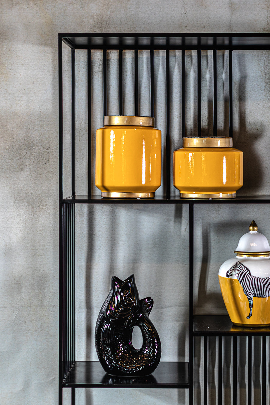 ואזה קרמיקה פאנקי פיש בצבע שחור. אגרטל בעיצוב קלאסי מדויק להשלמת נראות חלל בצבעוניות קולור בלוק.