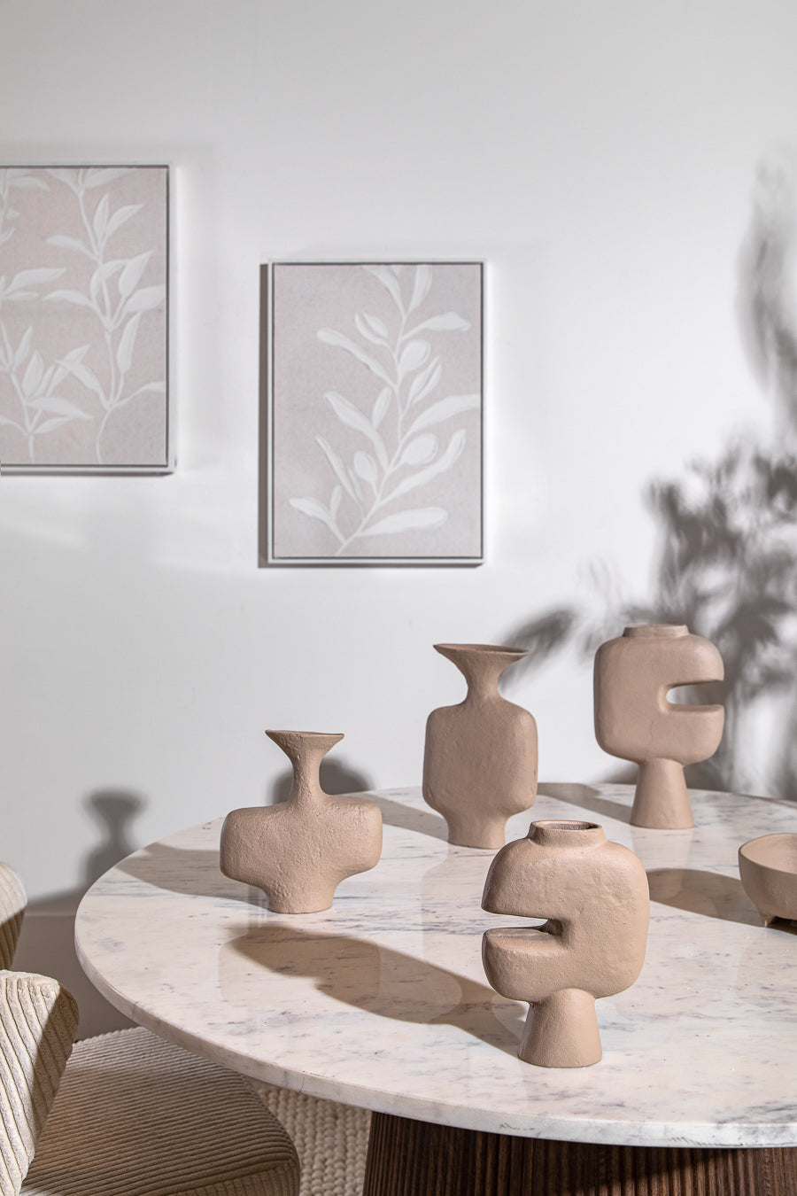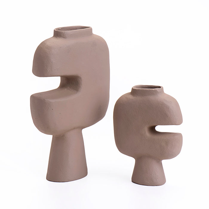 ואזה מתכת פורסט אמורפית בצבע בז'. PIECE מדוייק מלא אופי, המתכתב עם עולמות העת העתיקה. לאוהבי אקססוריז המעוצבים מרקם  וצבעוניות מאירה.