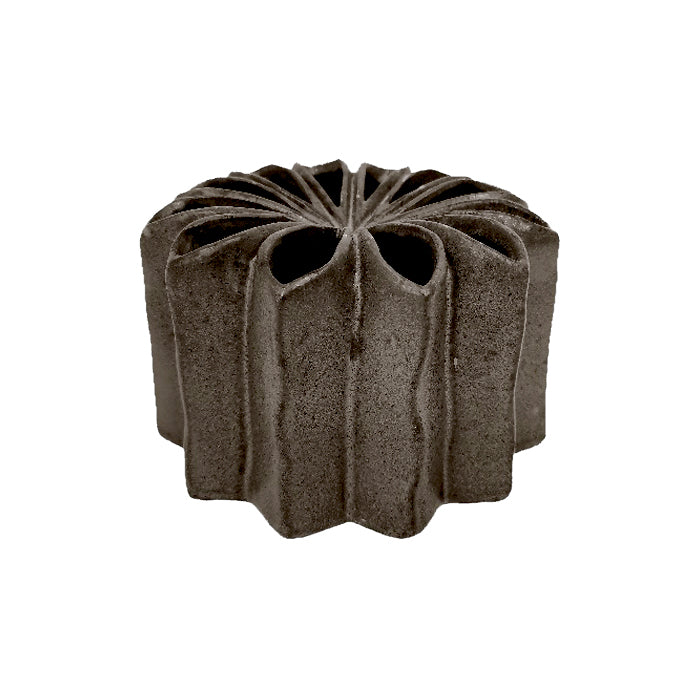 ואזה קרמיקה פלאוור בצבע שחור. אגרטל בעיצוב רב מימדי ייחודי בסילואט עלי כותרת צרים.