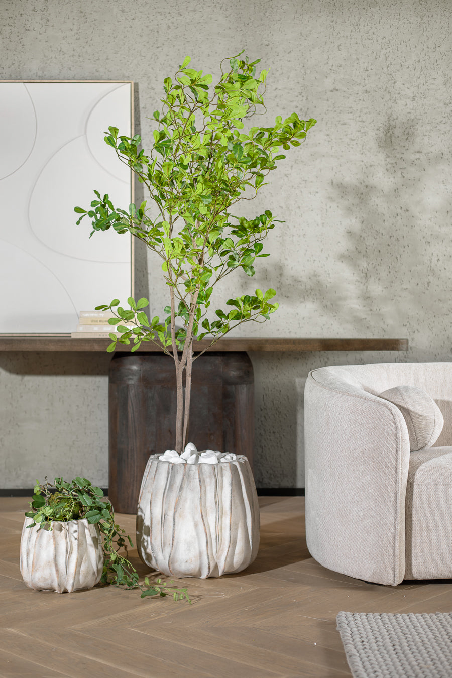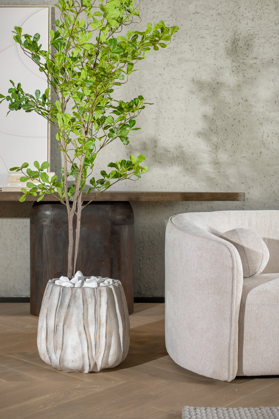 עציץ צמנט ליבס בגוון אפור. פלנטר בטון מרשים מעוצב קימוט ייחודי בחומר.