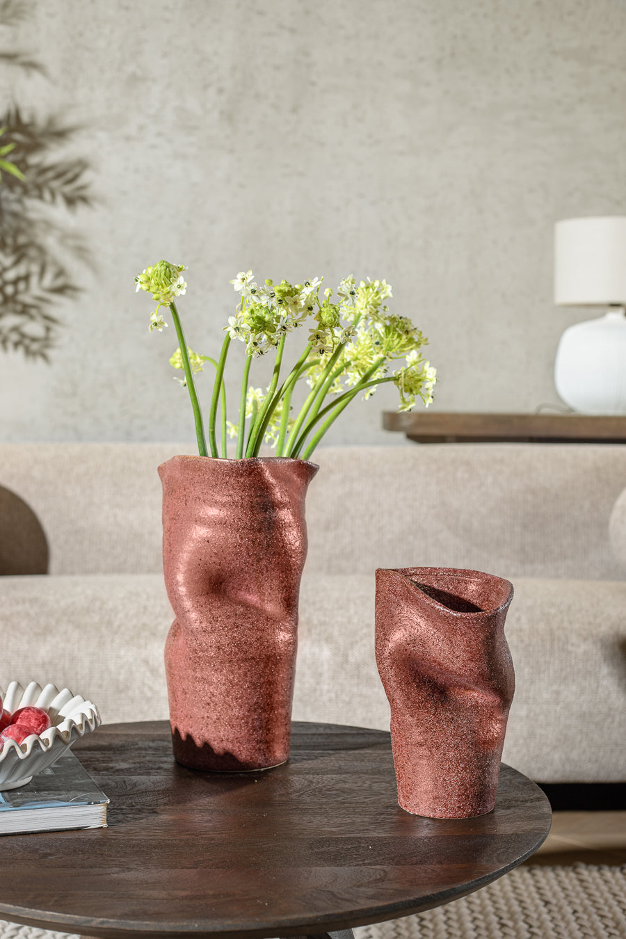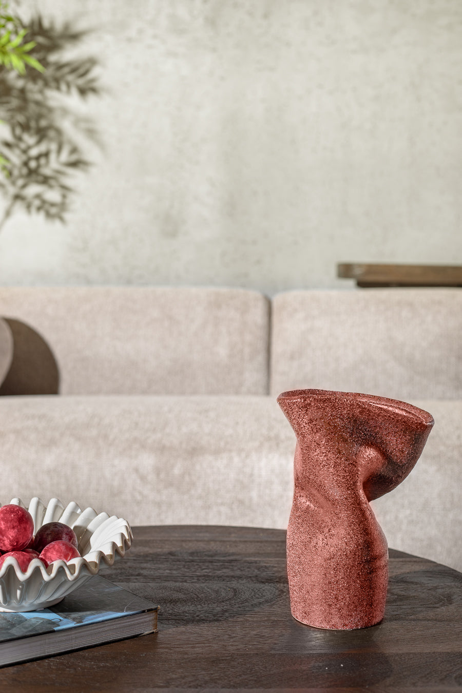 ואזה קראנץ' בגוון אדום. אגרטל קרמיקה מעוצב גוף ארוך מעוקם, המדמה תנועה במרחב.