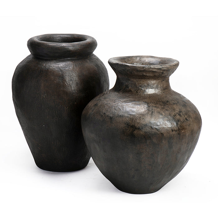 כד בטון פרימיטיב שפה עבה בגוון שחור פחם. בית עציץ מאסיבי מרשים שעיצובו מתכתב עם סגנון הכדים ההליניסטי. כד על זמני כובש בגוון תעשייתי, מושלם ככלי קיבול לעציץ גדול בפתח הבית או בכניסה ללובי משרדים מרווח.