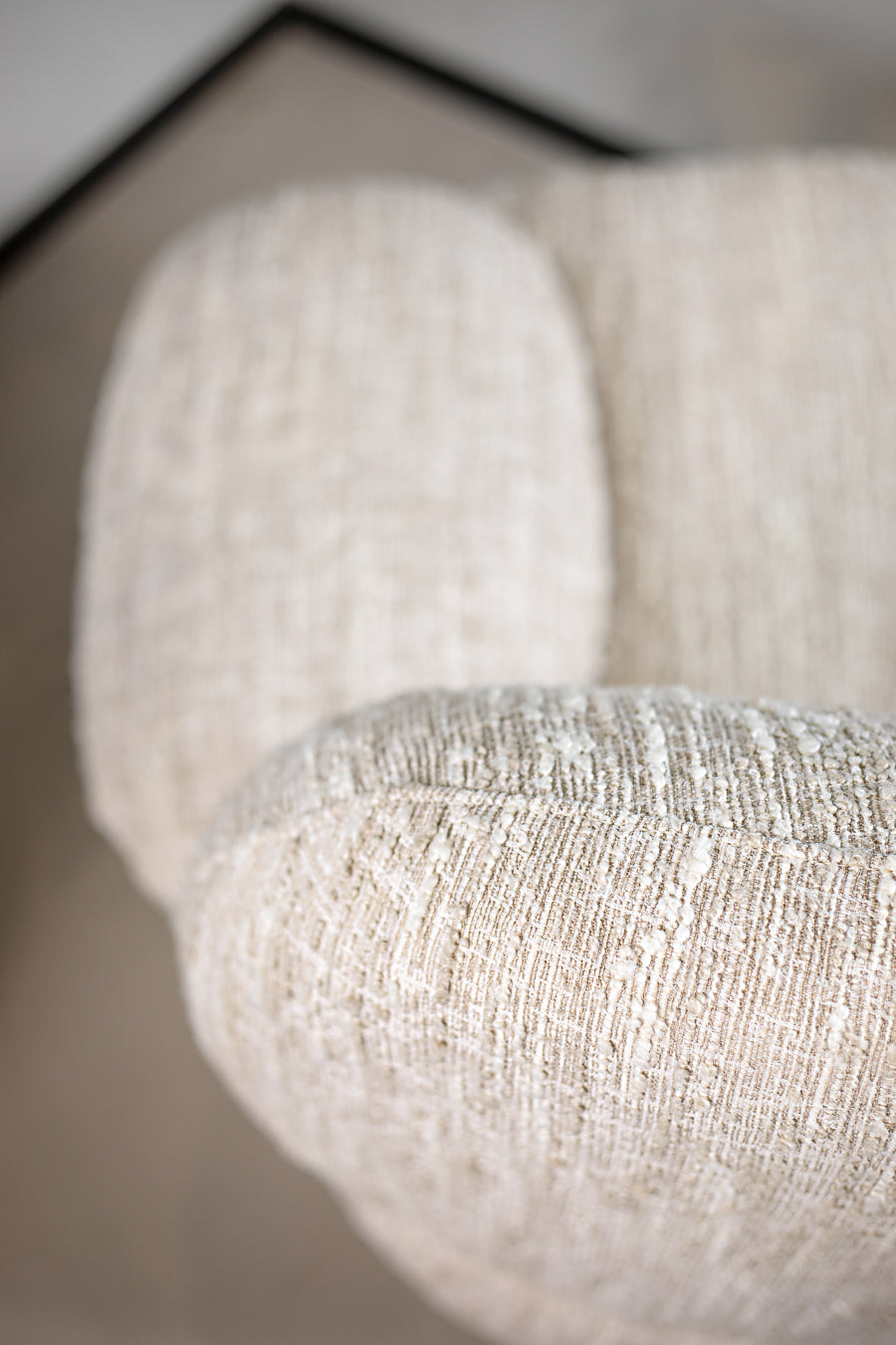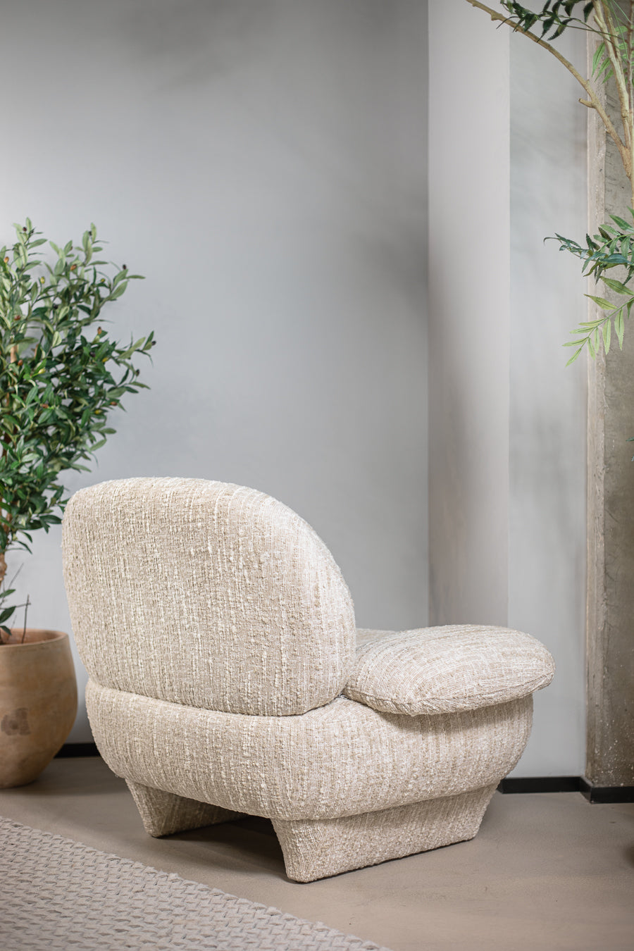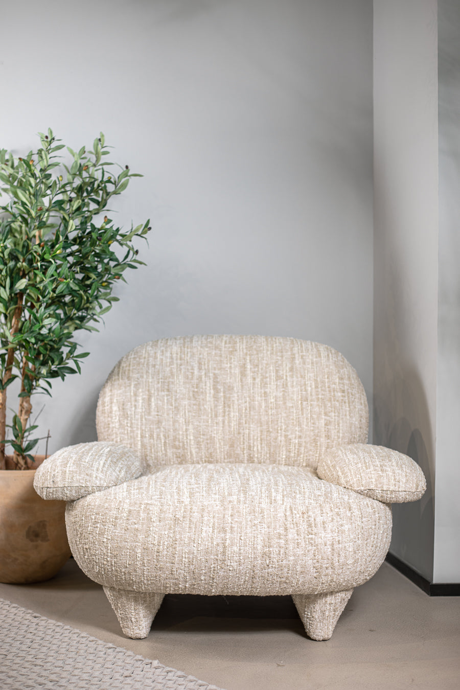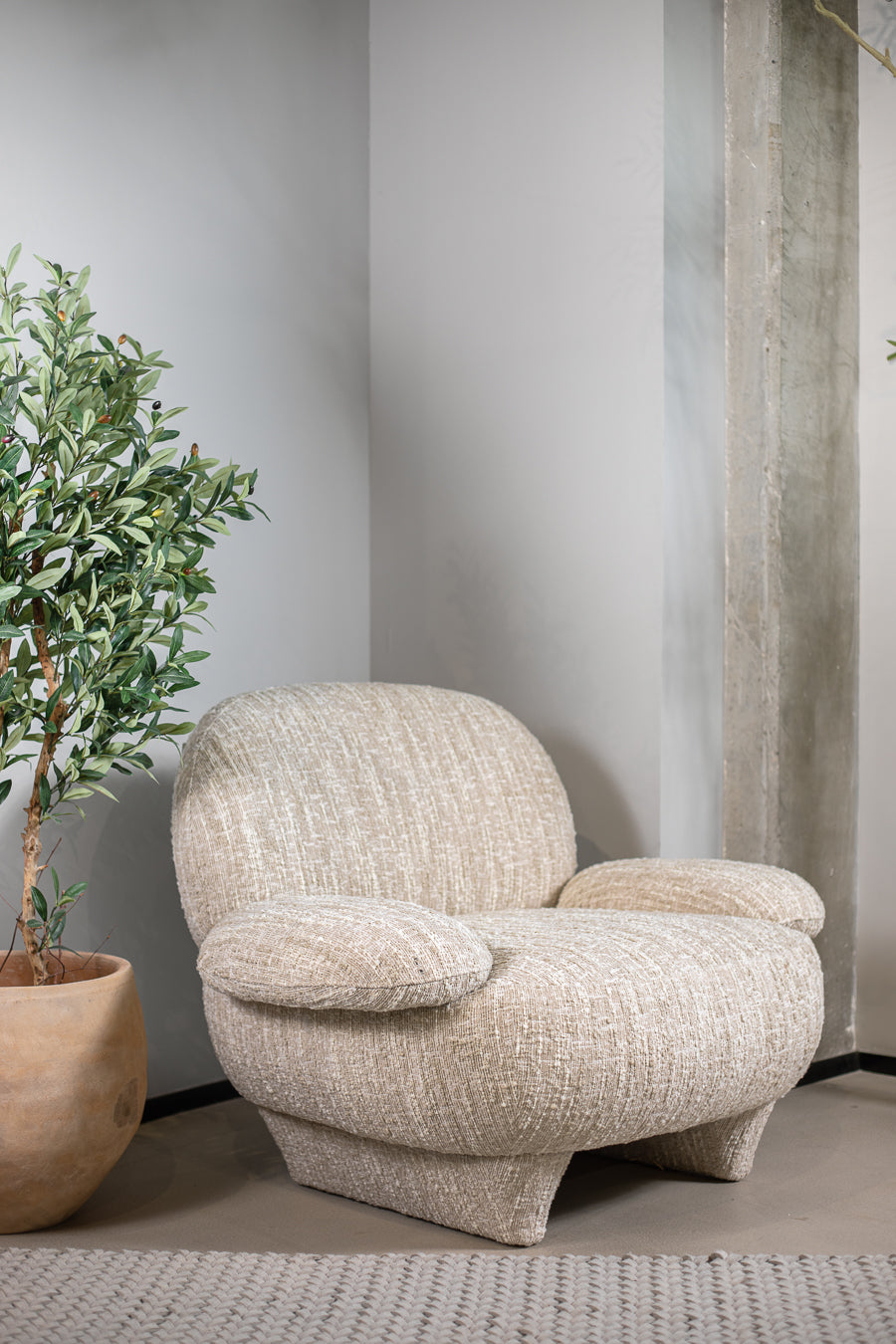 כורסת אירוח אינגריד בגוון בז' מלאנז'. כורסת יחיד מעוצבת מסעדי ידיים, המתחקה אחר התגבשות צורות אמורפיות מהטבע.