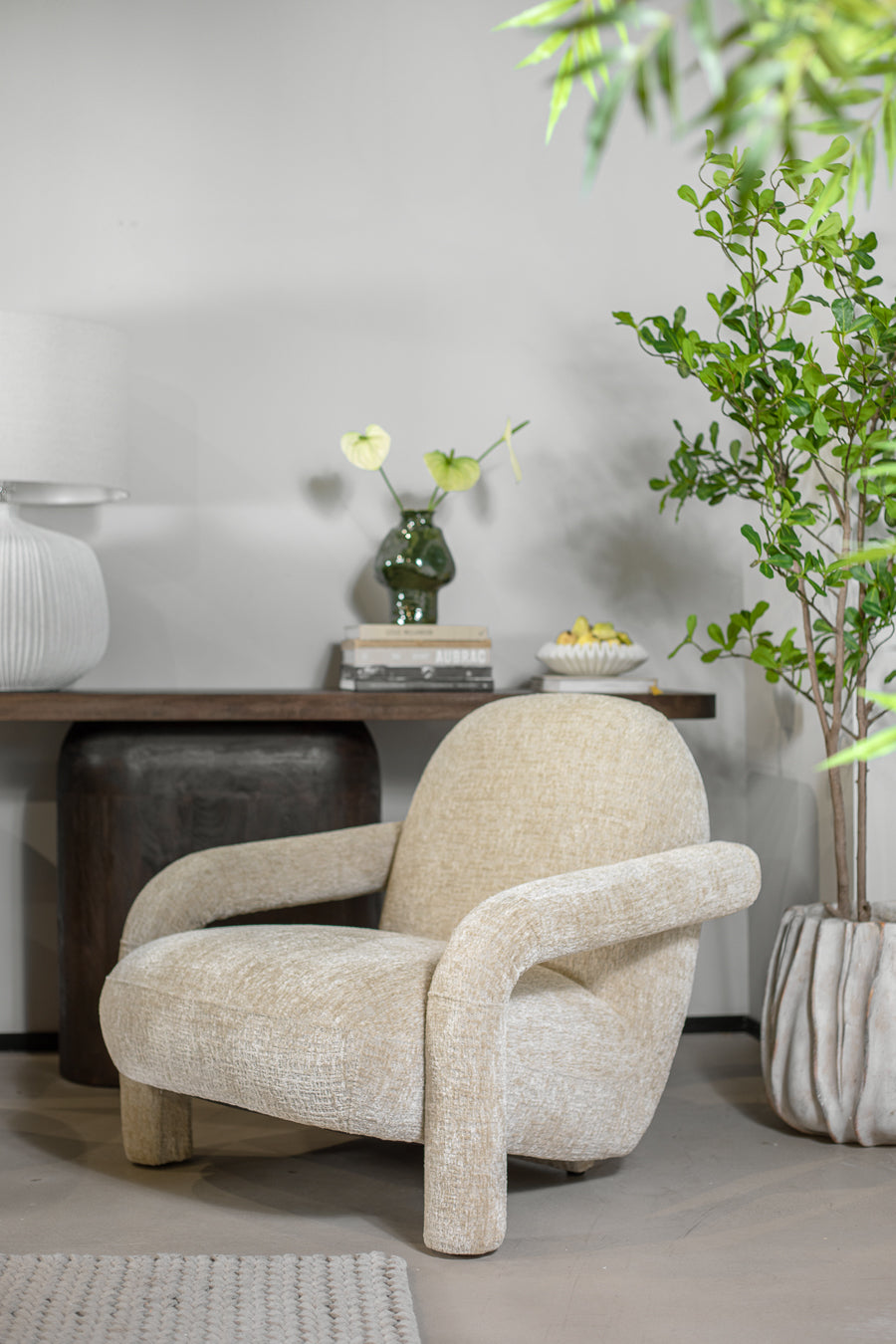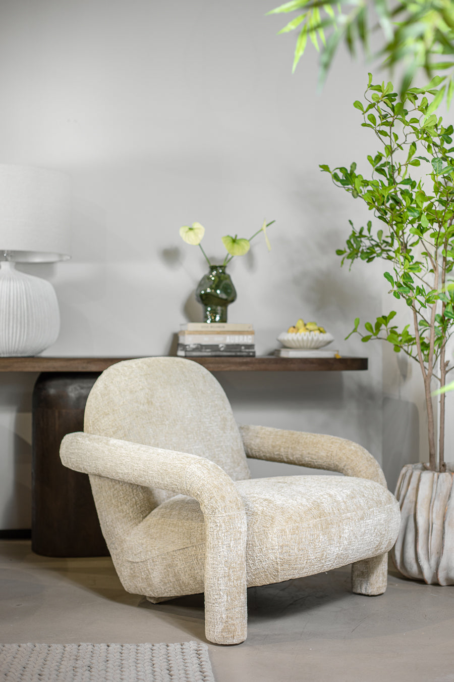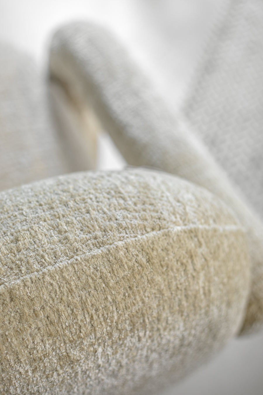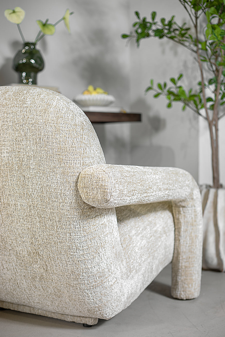 כורסה נורמה מפנקת בגוון בהיר. כורסת ישיבה קולור בלוק בגימור עגול.