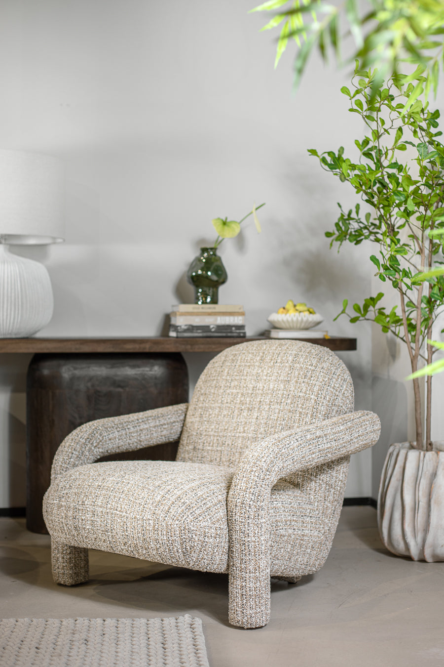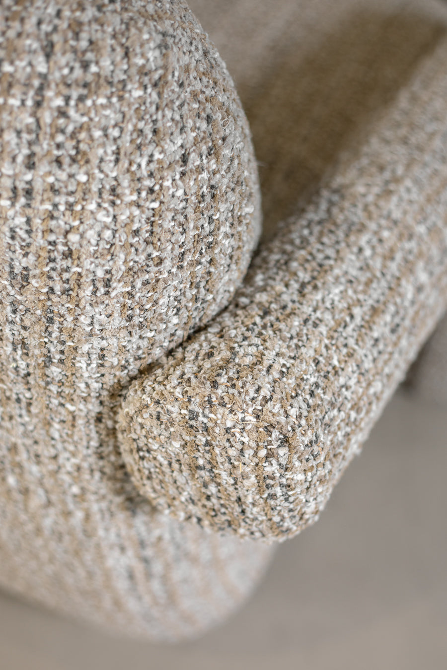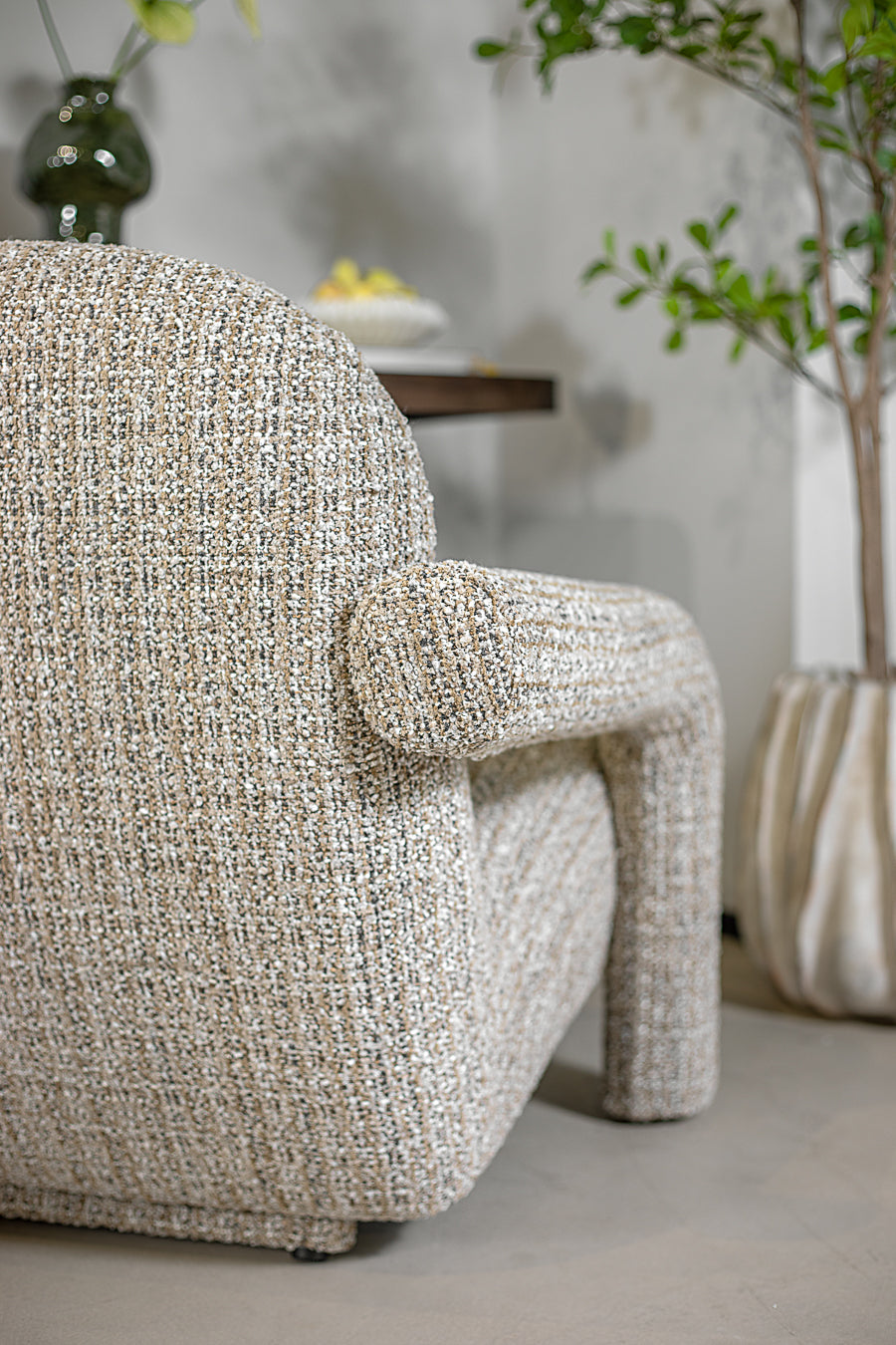 כורסה נורמה מפנקת בגוון חום. כורסת ישיבה מרופדת אריג טוויד בלוק בוגר.