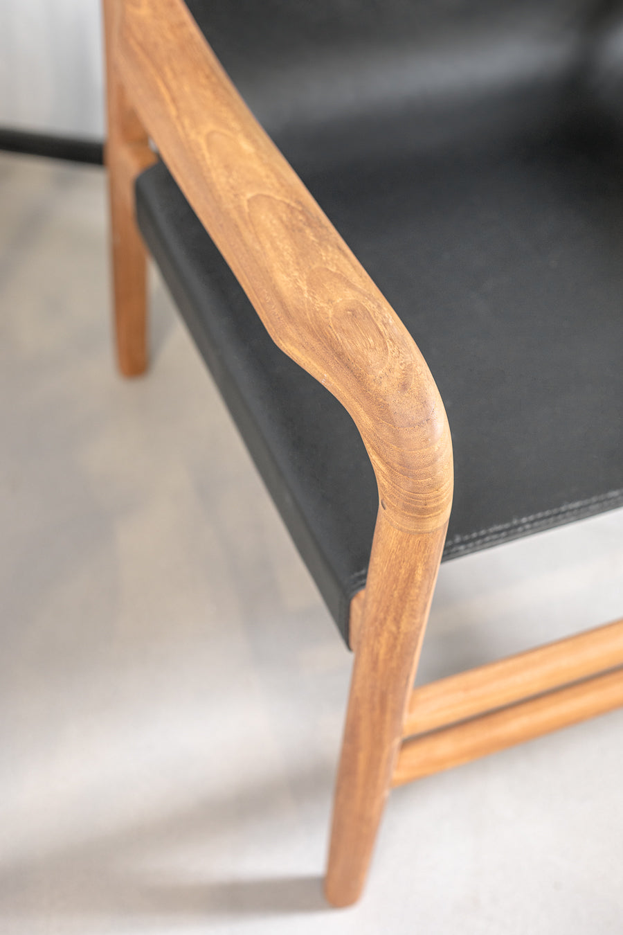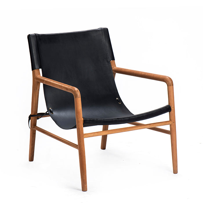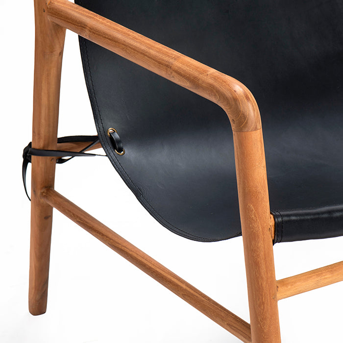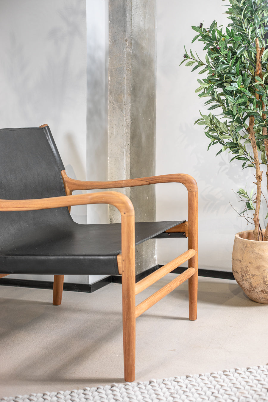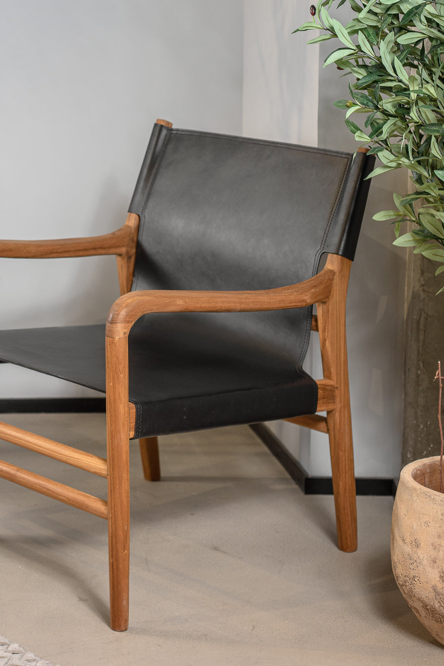 כורסת עור one piece בצבע שחור. כיסא טרקלין חתרני מעוצב עור חלק, הנישא על רגליי עץ טיק.