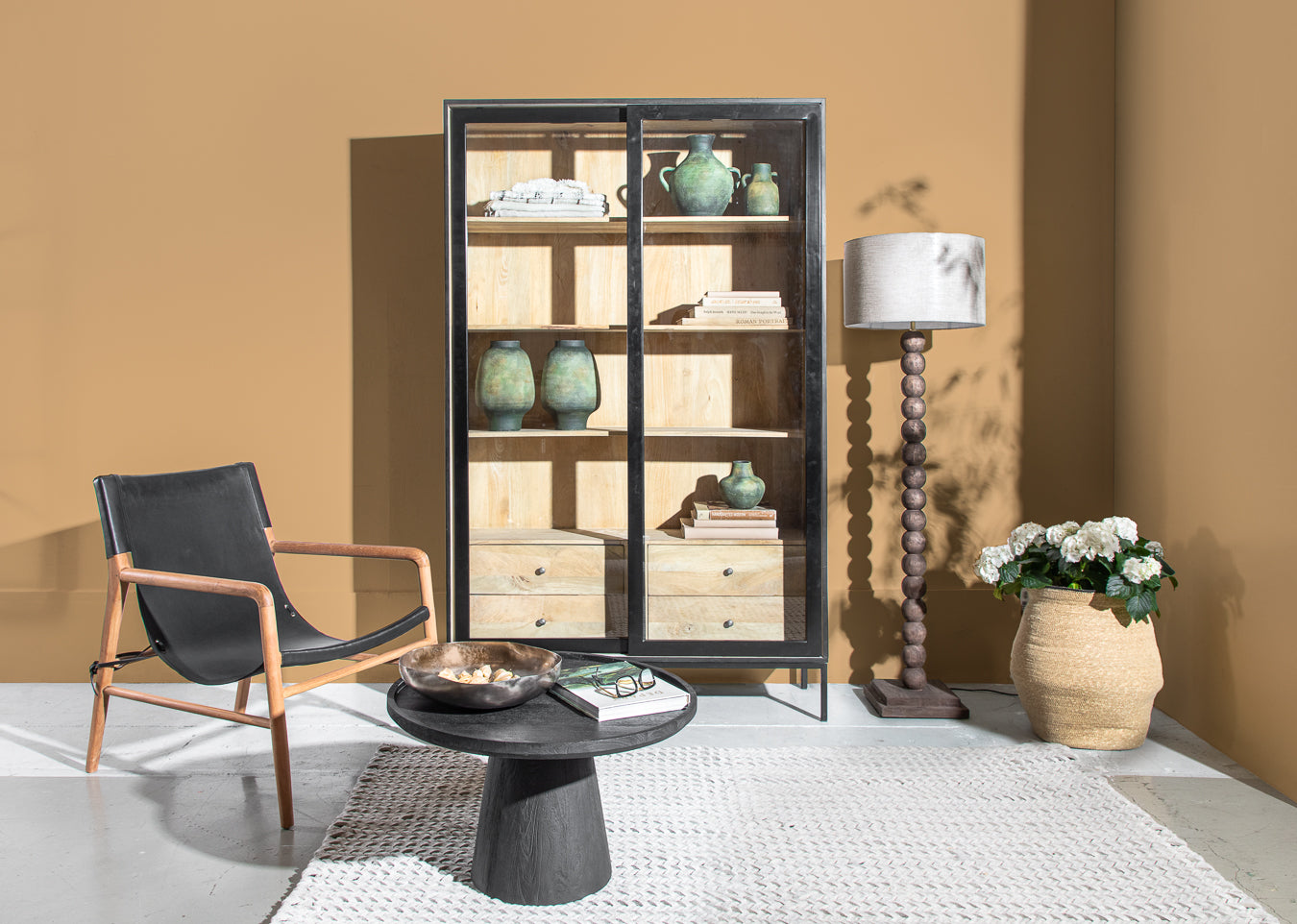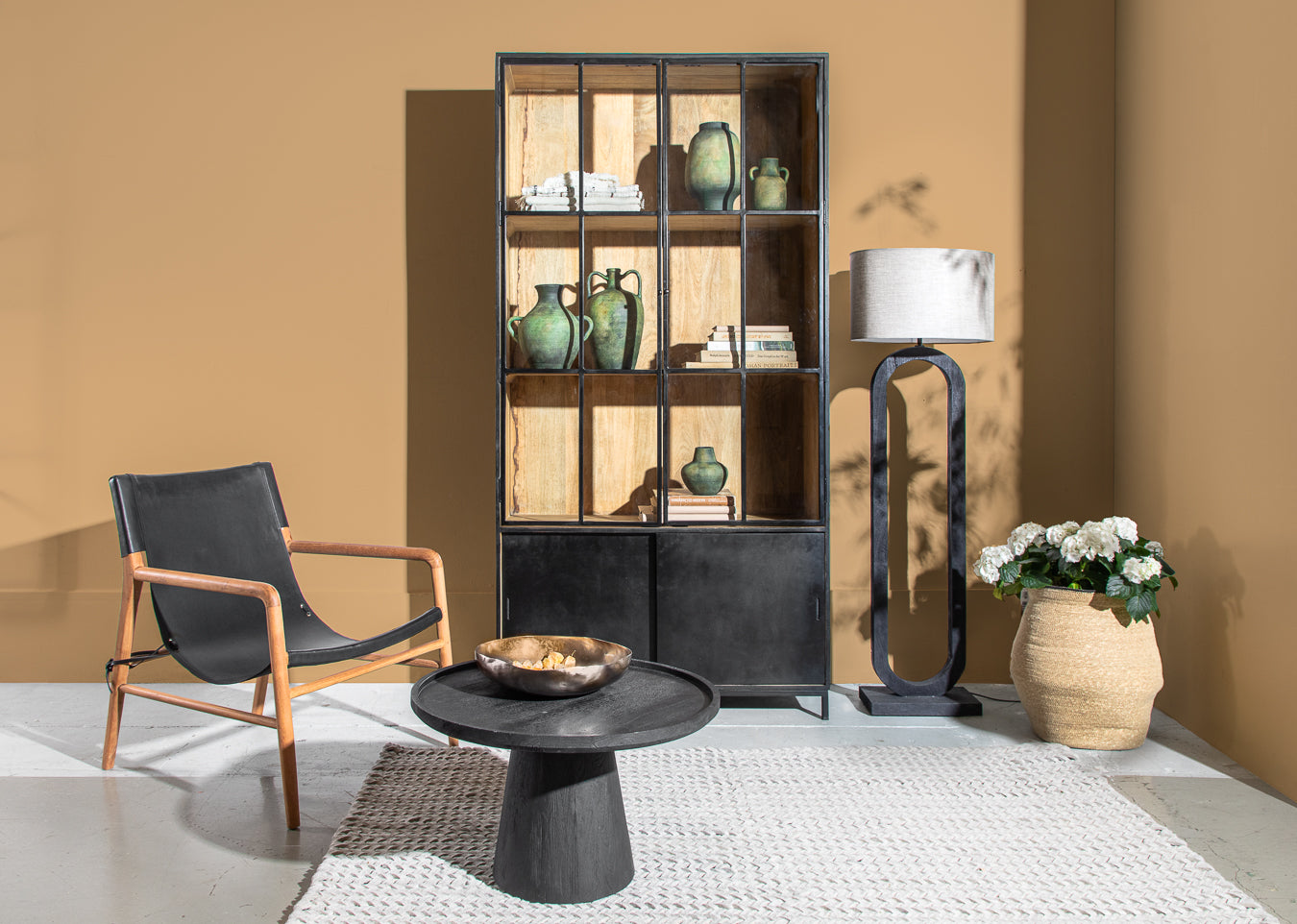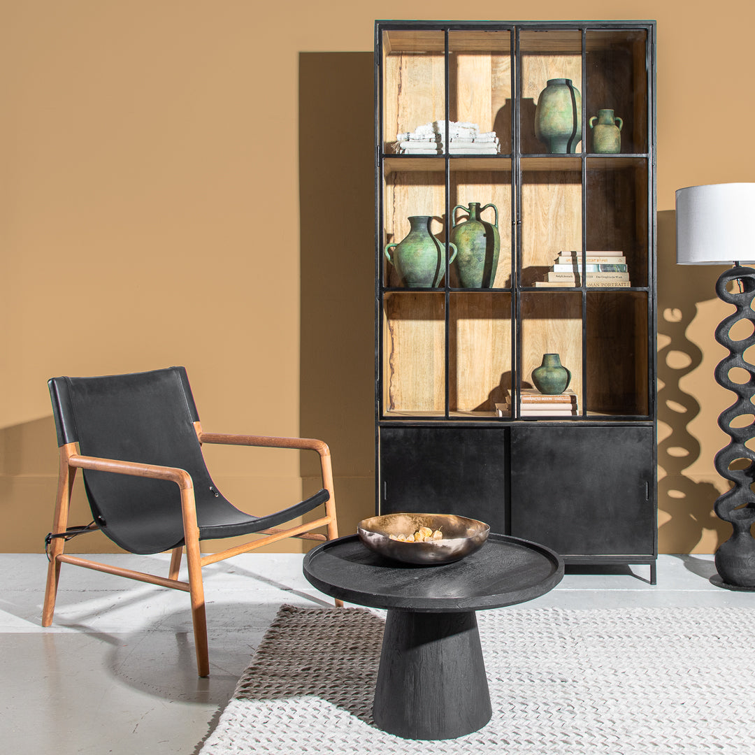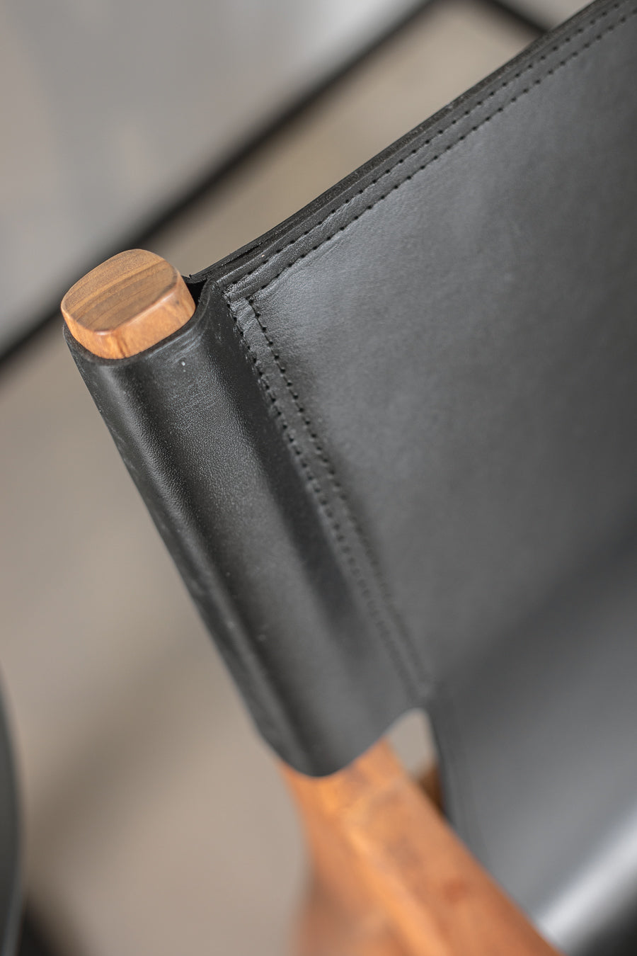 כורסת עור one piece בצבע שחור. כיסא טרקלין חתרני מעוצב עור חלק, הנישא על רגליי עץ טיק.