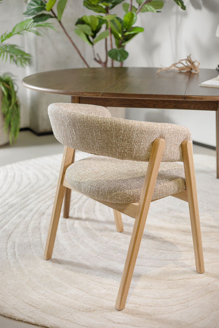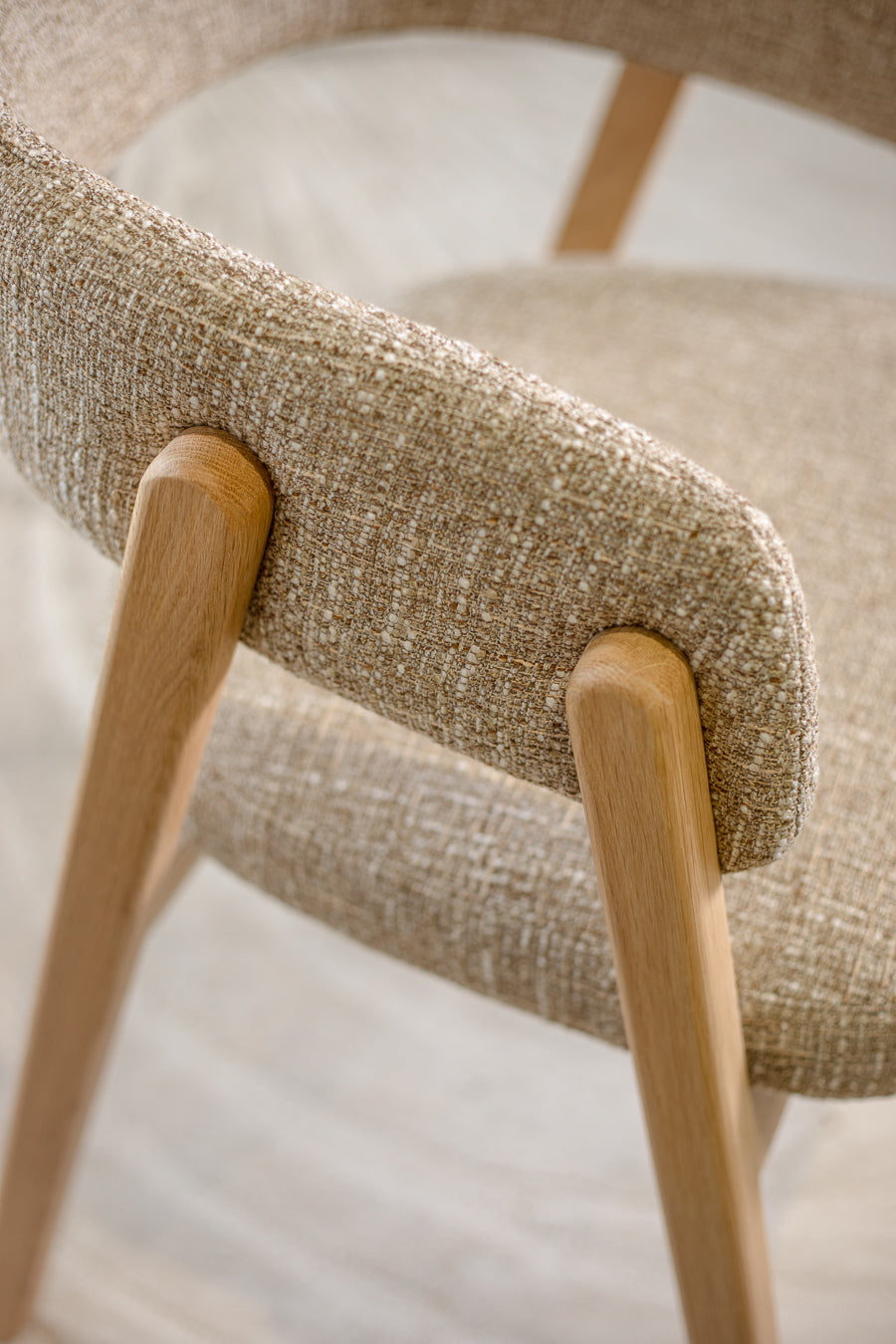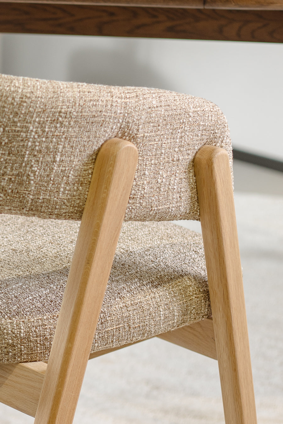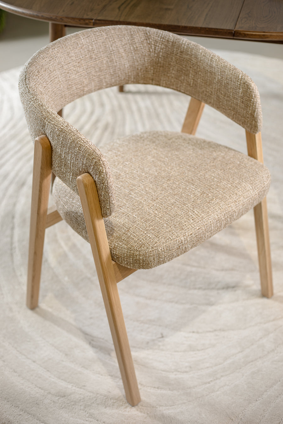 כיסא אלסנדרו בגוון בהיר. כיסא אירוח מעוצב משענת ומושב מרופדים בקו רטרו עכשווי.