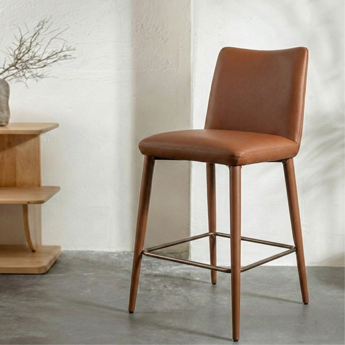 כיסא בר פרדריק בגוון חם. כיסא בר מרופד מקשה אחת: מושב ומשענת גב ועד רגלי הכיסא.