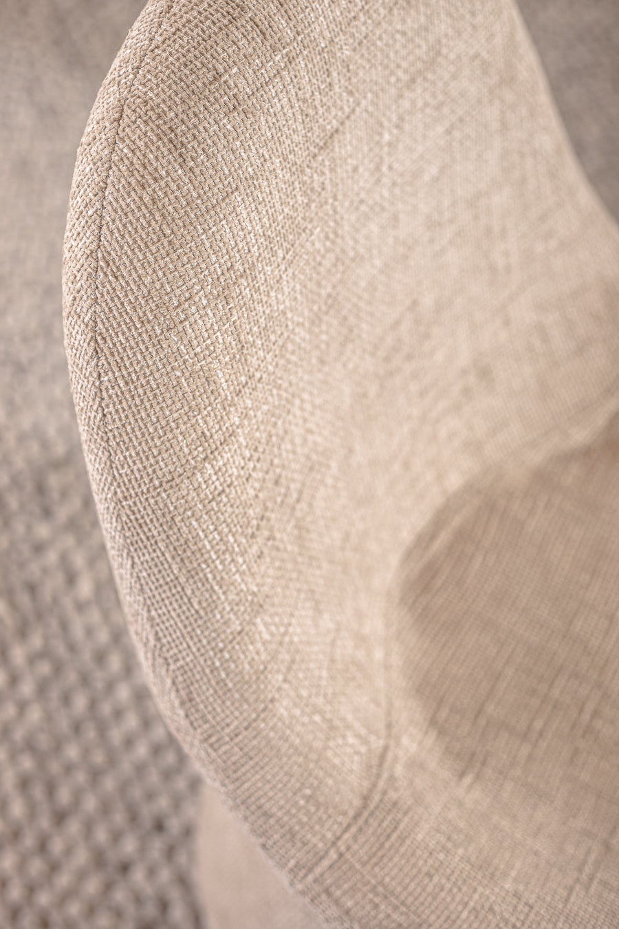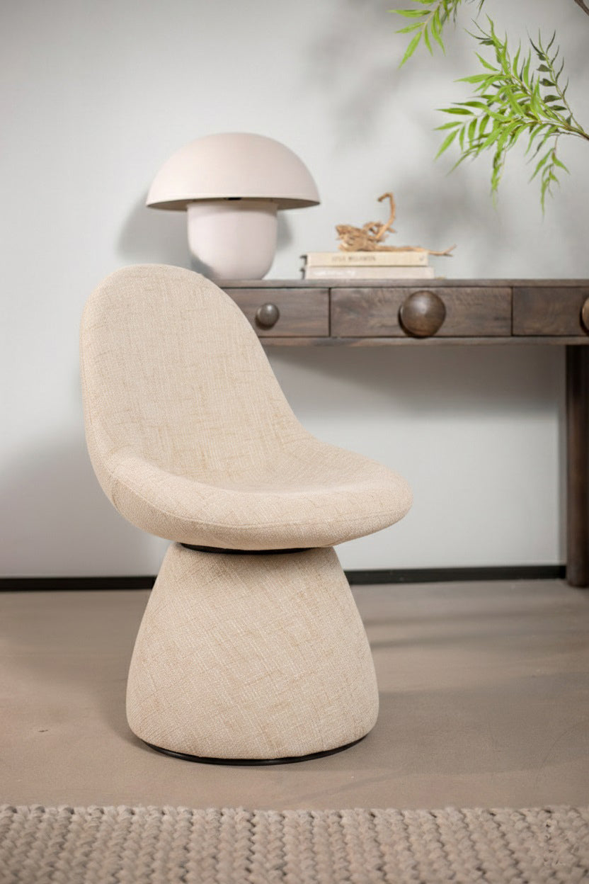כיסא אירוח נורה בגוון בהיר. כיסא-כורסה מעוצב עיטוף עגול, החובק את היושב/ת.