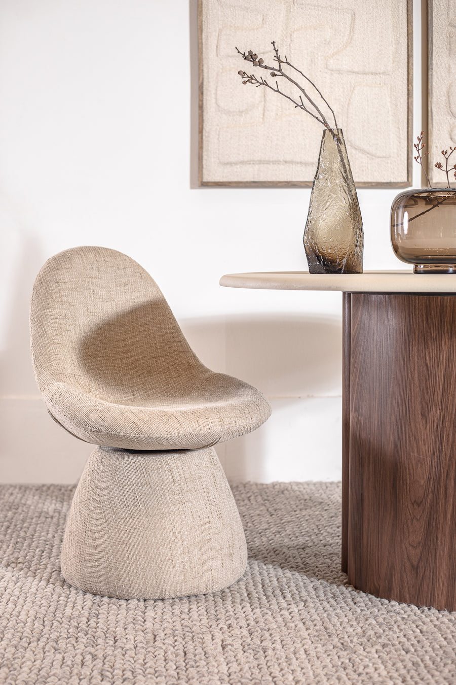 כורסאת אירוח יציבה, מורכבת גופים אמורפיים המשווים לה נפח ונוכחות הרמונים בחלל.