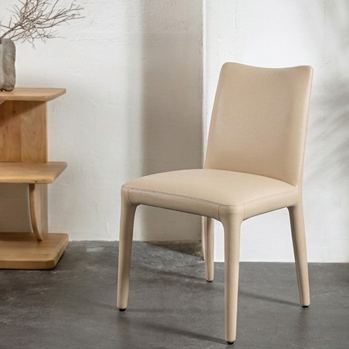 כיסא פרדריק בגוון בהיר. כיסא אוכל מרופד מקשה אחת: מושב ו משענת גב ועד רגלי הכיסא. כיסא אלגנטי, מעוצב בקו מנימליסטי.
