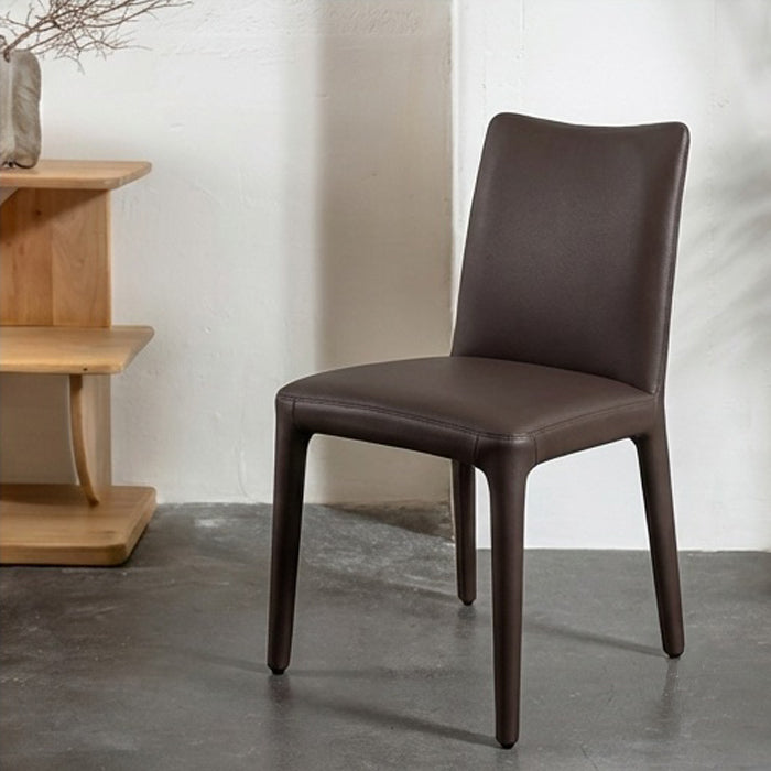 כיסא פרדריק בגוון כהה. כיסא אוכל מרופד מקשה אחת: מושב ו משענת גב ועד רגלי הכיסא. כיסא אלגנטי, מעוצב בקו מנימליסטי.