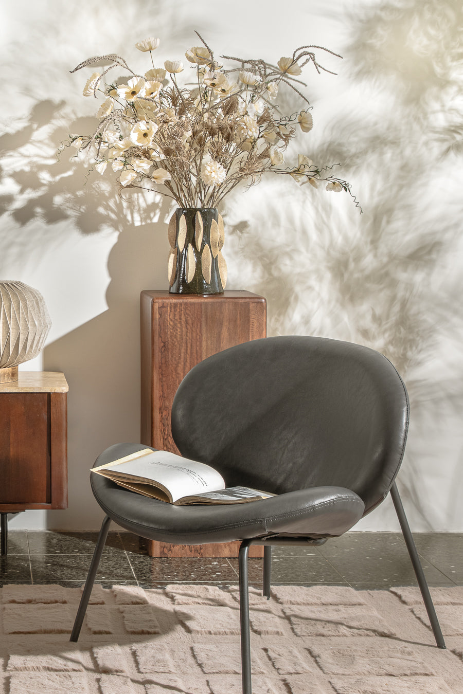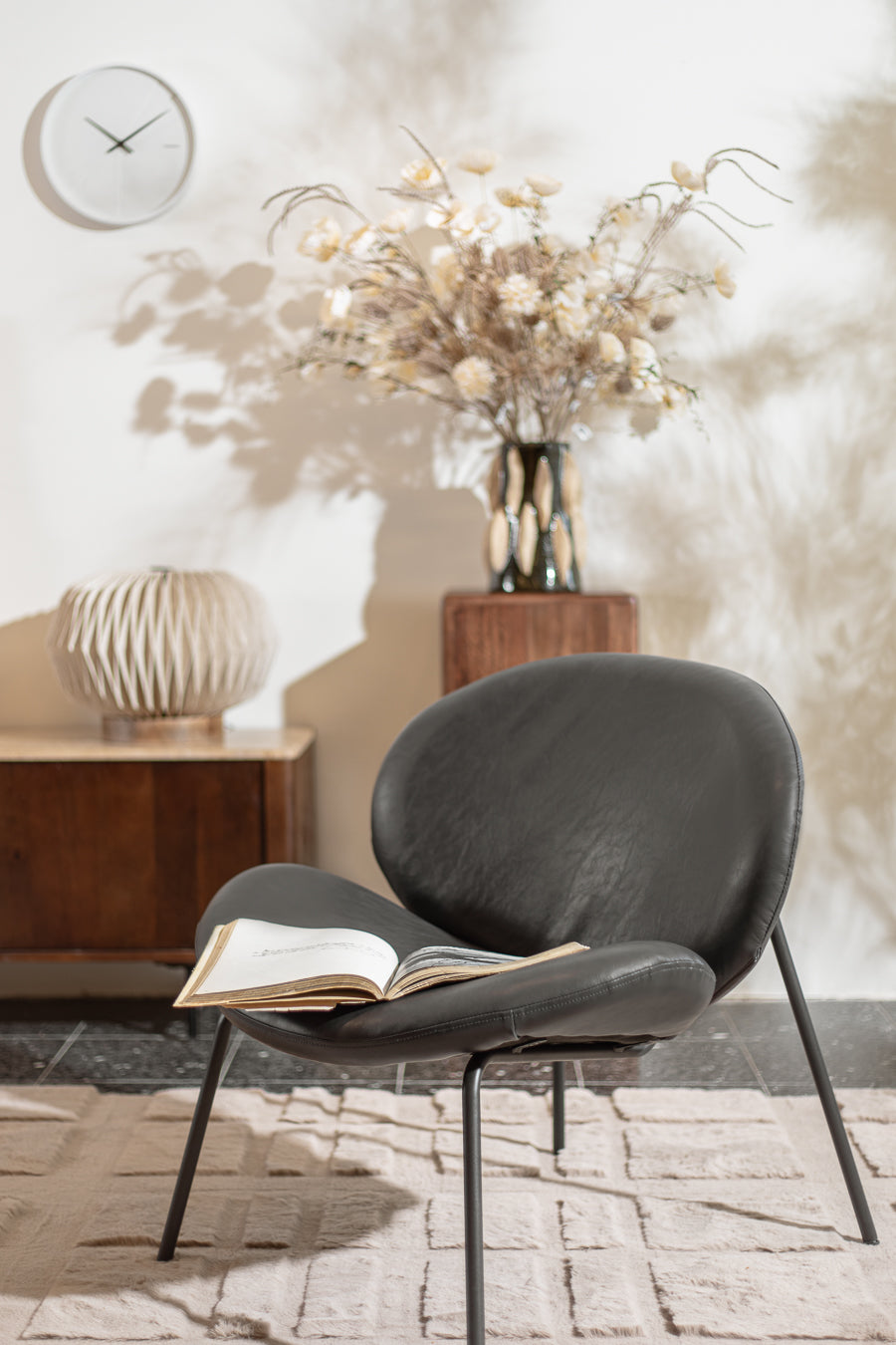לאונג' צ'ייר לייזי מדיסון בצבע שחור. כורסה מרופדת משענת ומושב בגימור חלק, הנישאת על רגלי מתכת .