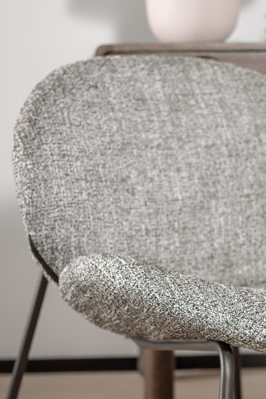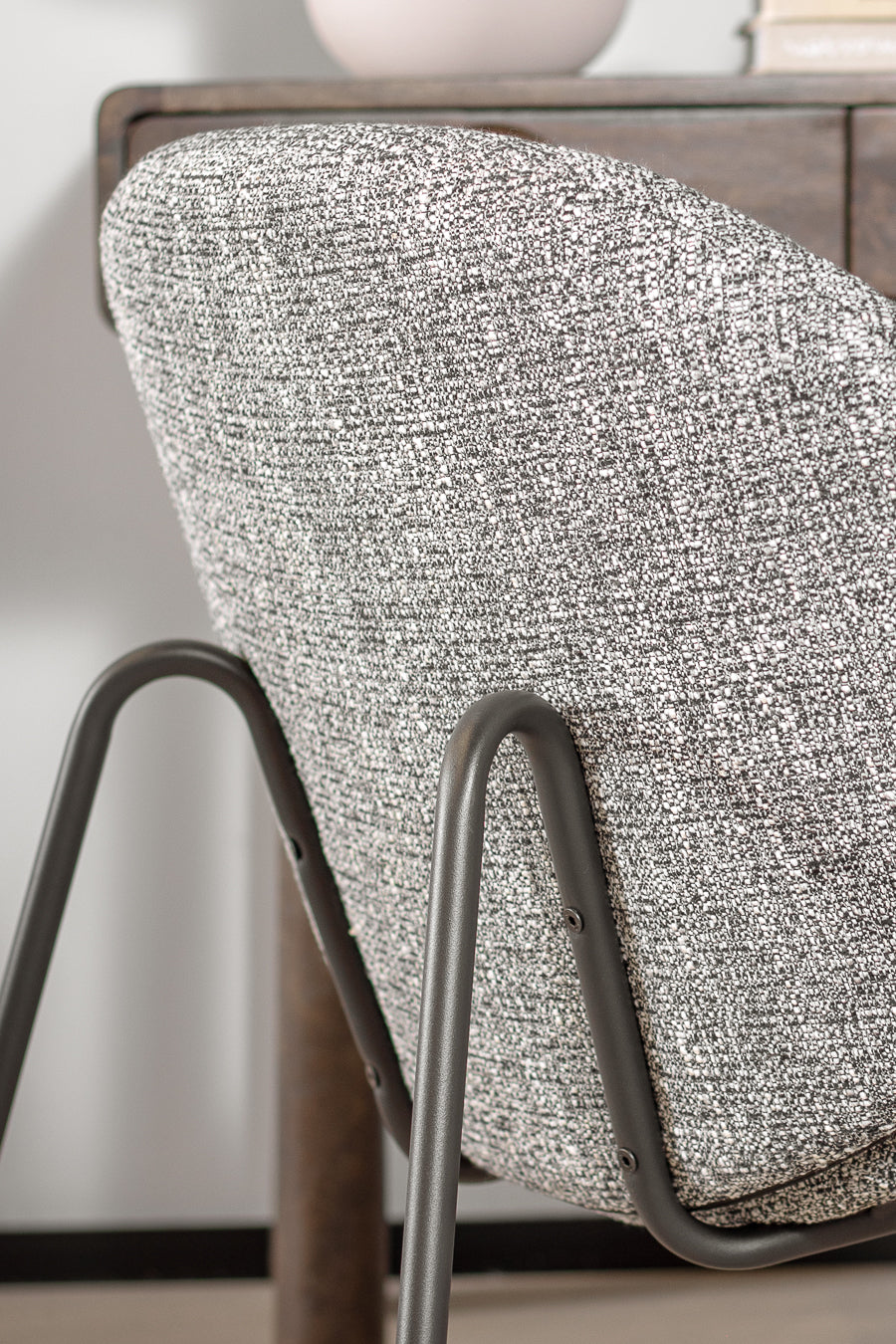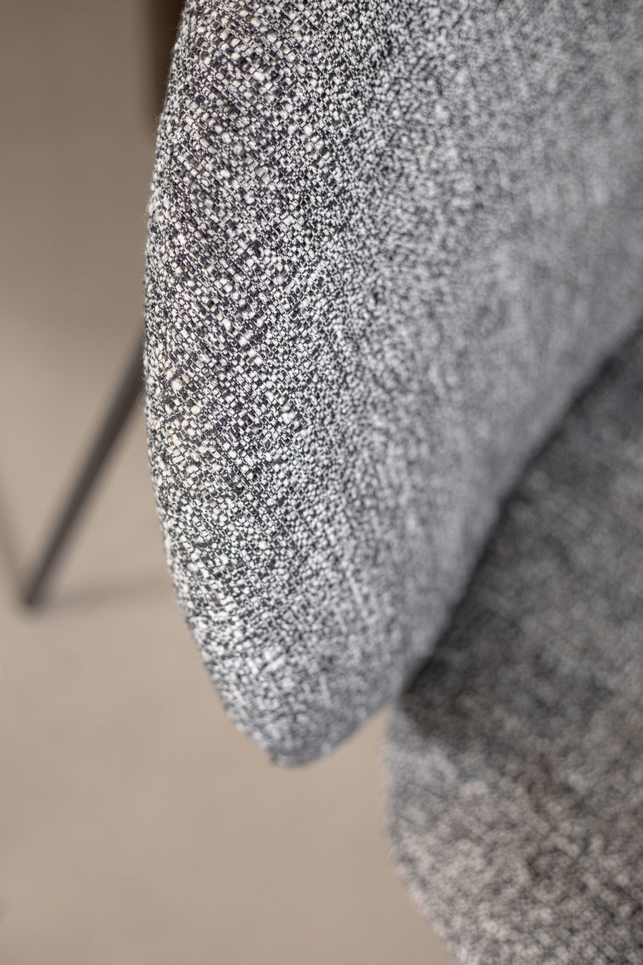 לאונג' צ'ייר לייזי מדיסון בגוון אפור. כורסה מעוצבת משענת ותושבת מעוגלים, הנישאת על רגלי מתכת בגוון זהה.