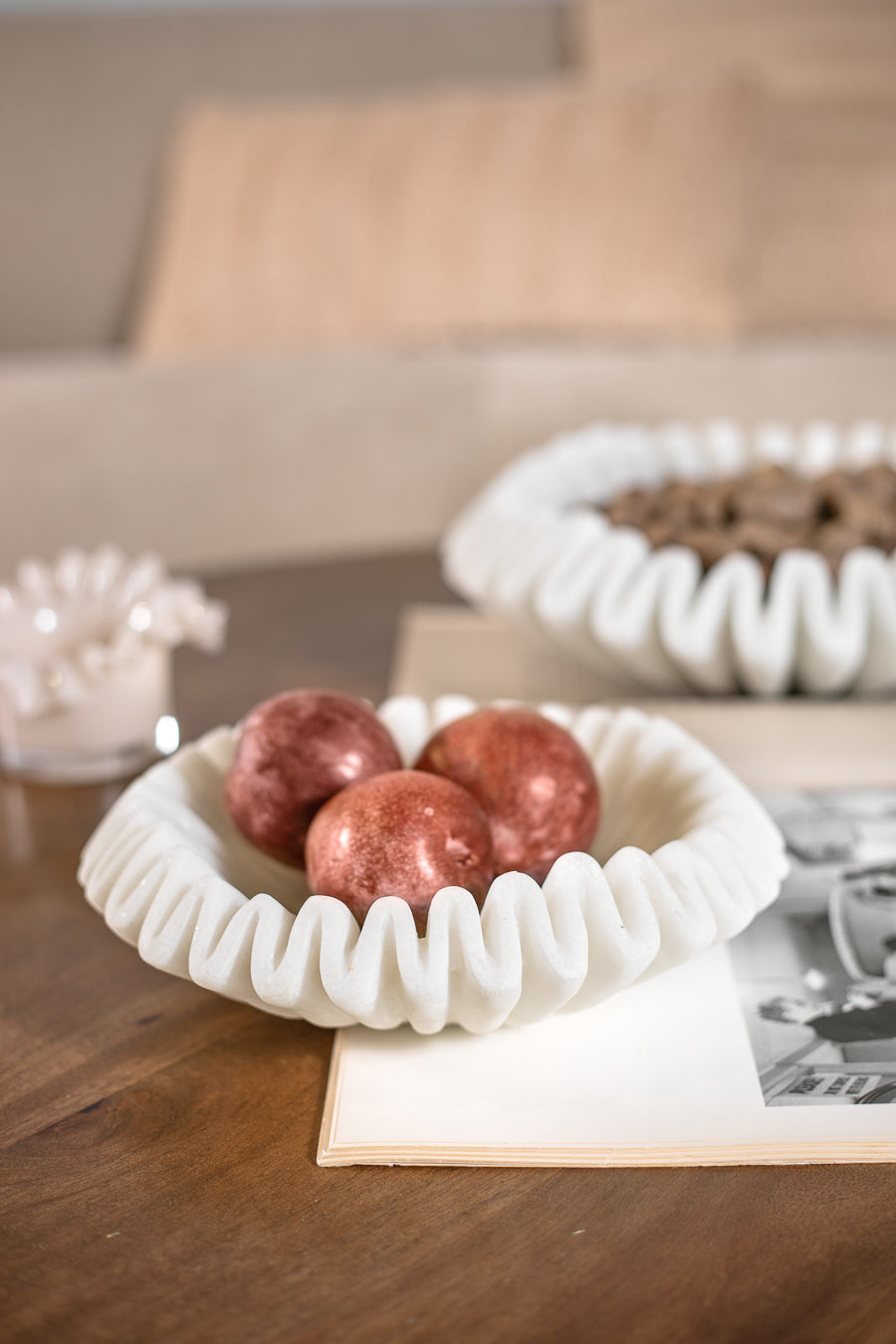 מגש אלמנט אוניקס בצבע לבן. כלי אירוח מפוסל קפלי פליסה מעודנים.