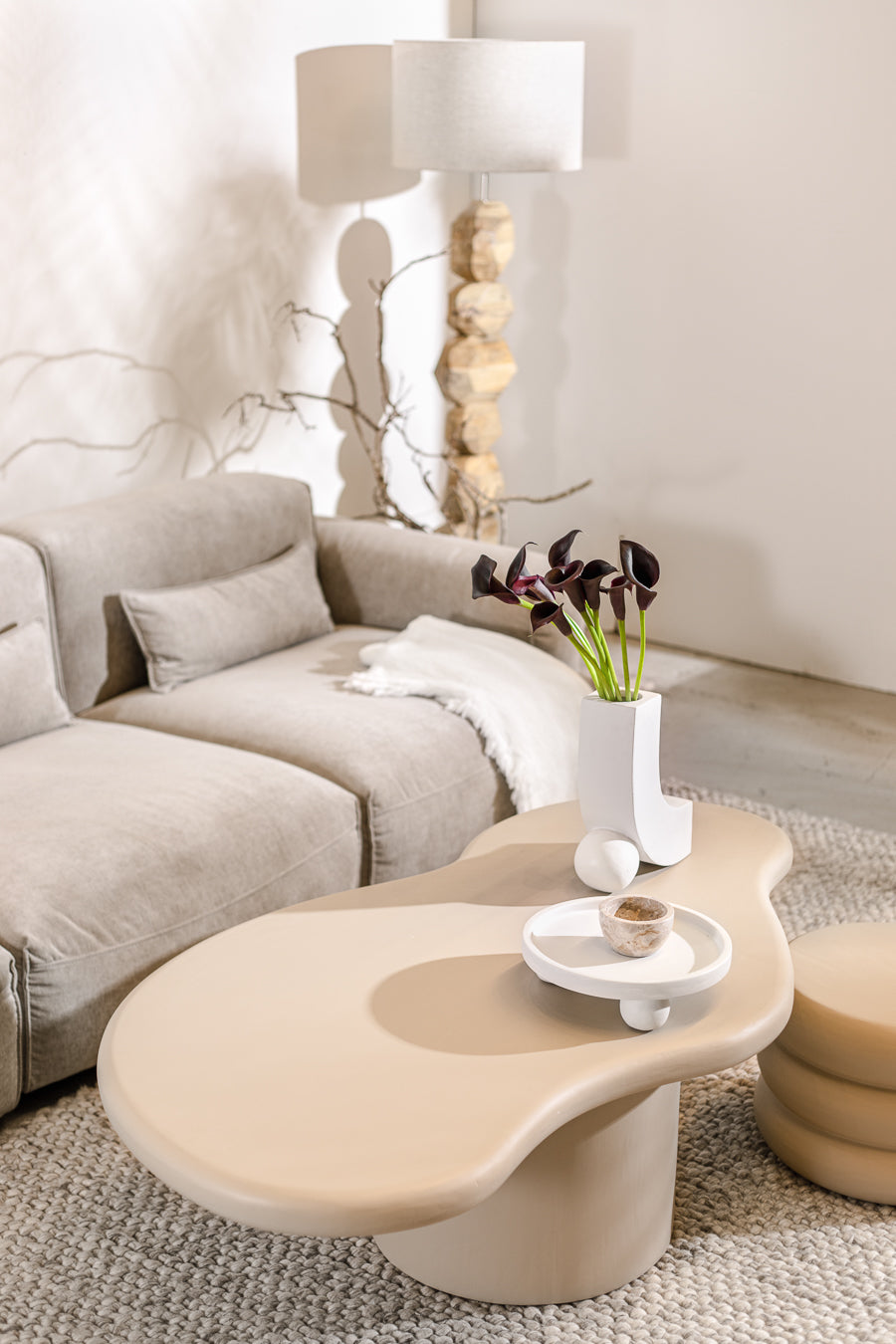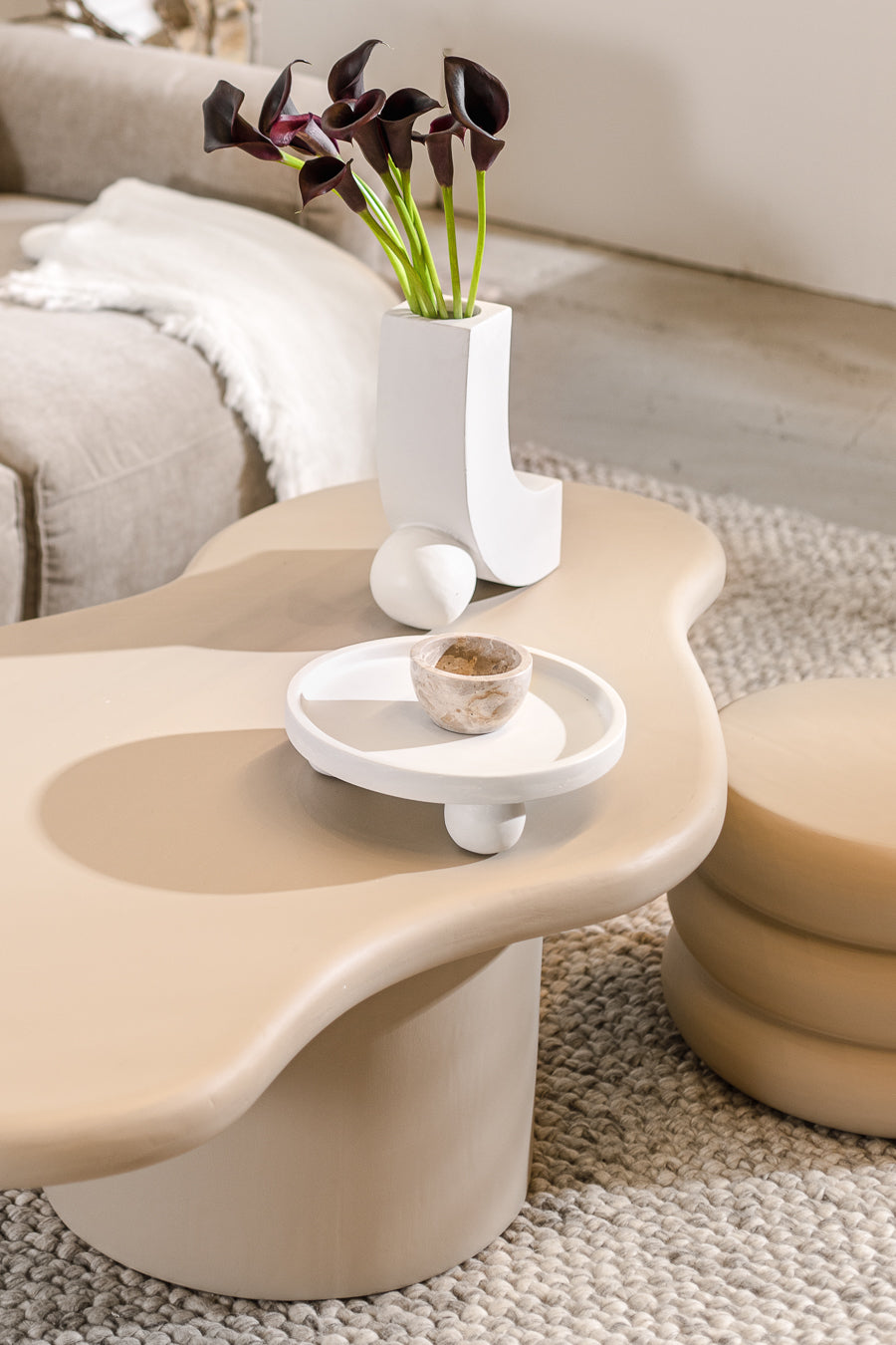 מגש אירוח ספייס עגול בצבע אייבורי. כלי הגשה מעוצב פלטת הגשה עגולה המונחת על 3 רגלי אלפנט בגימור אבן גיר .