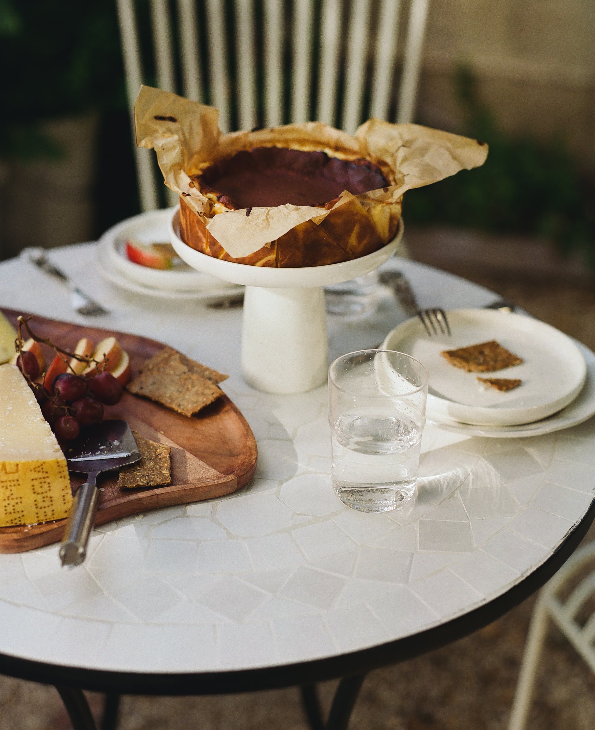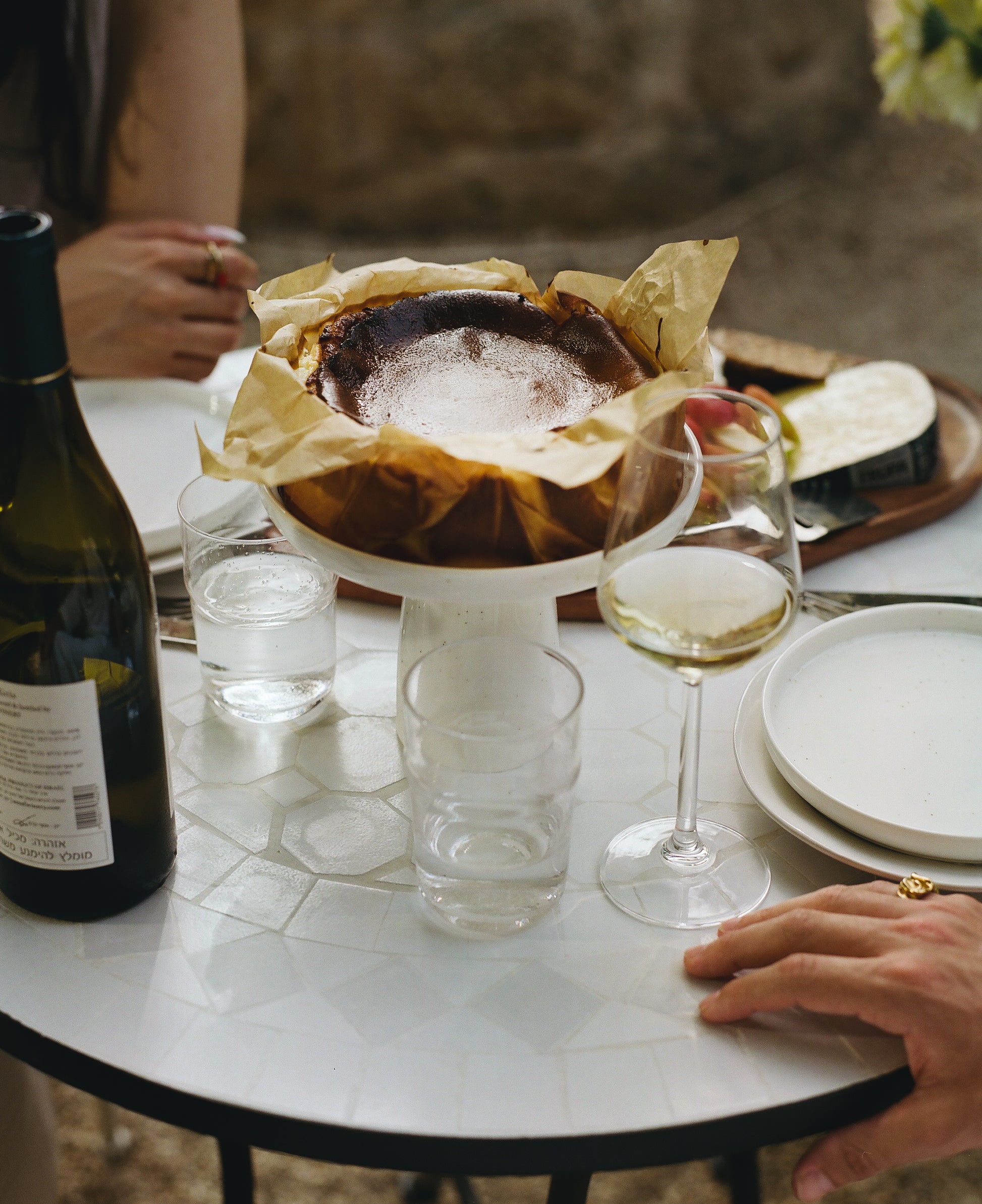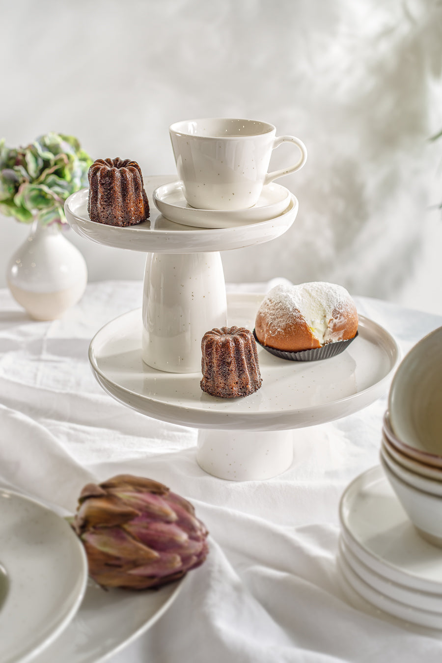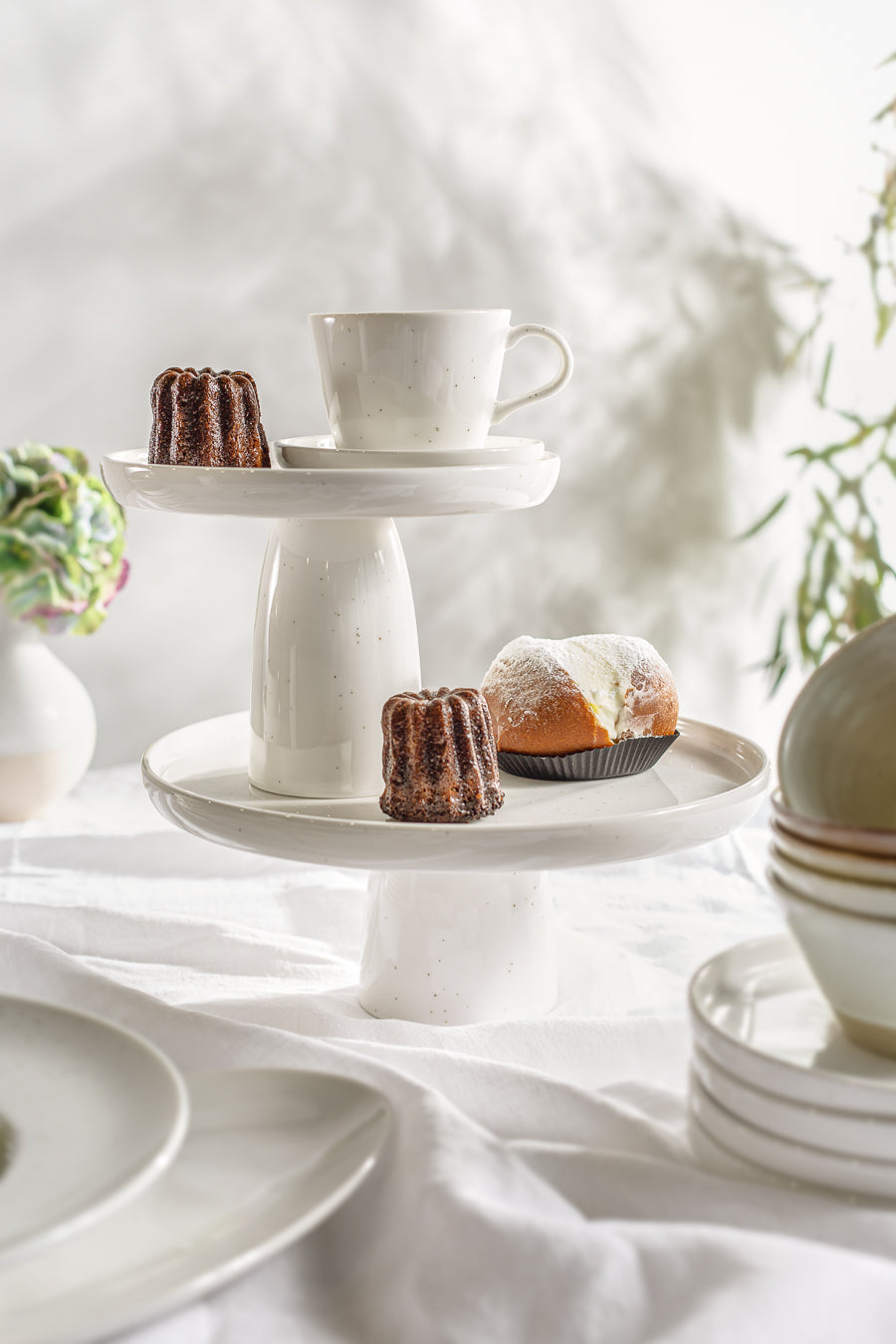 מגש על רגל בצבע לבן. כלי אירוח והגשה מוגבהה בקו נורדי קלאסי.