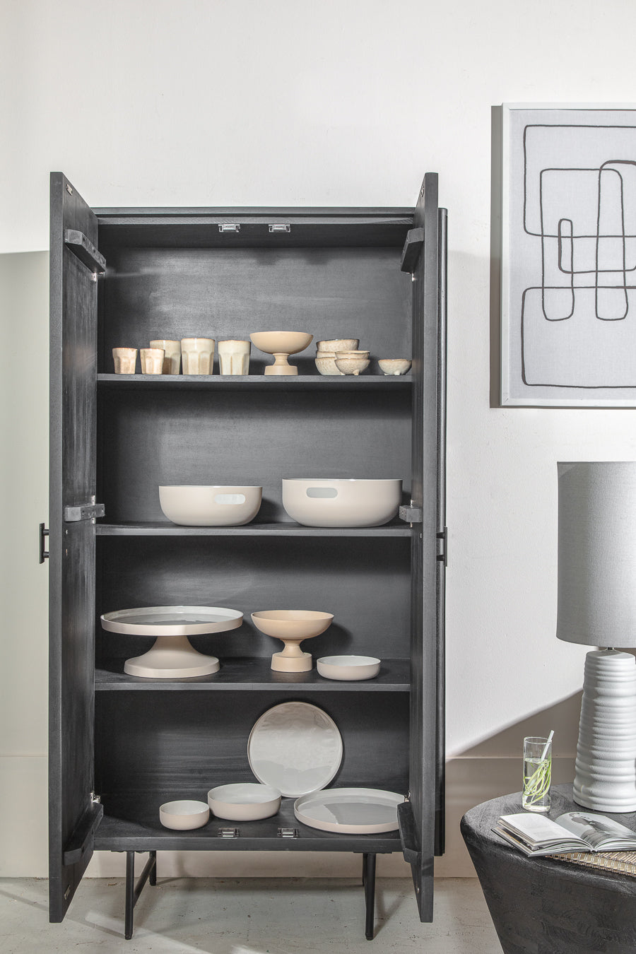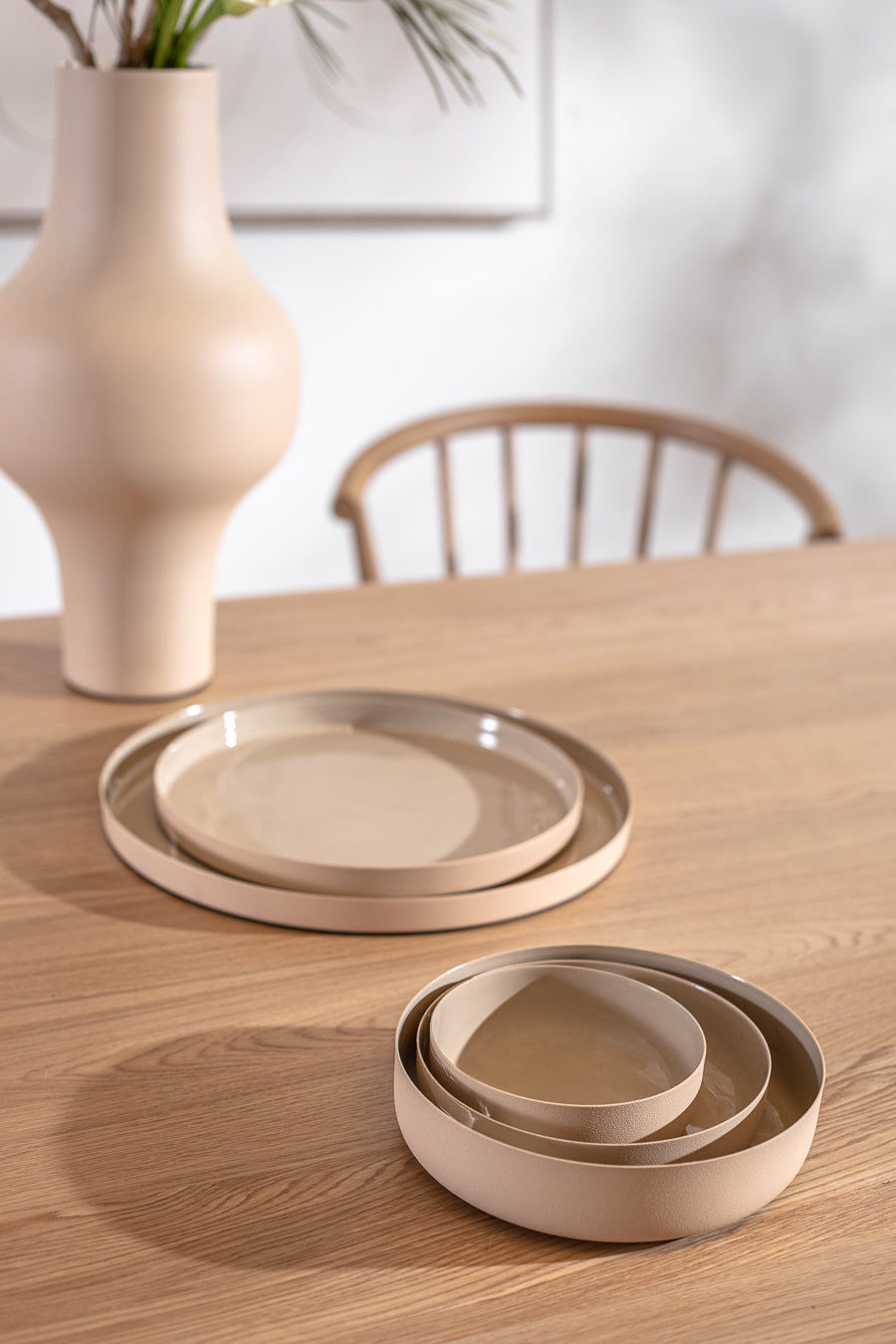 מגש אירוח פטיסרי, פרופיל סקיני עגול בצבע בז'. פריט מרשים המתאים לעיצוב שולחן מארח ב-קו מודרני.