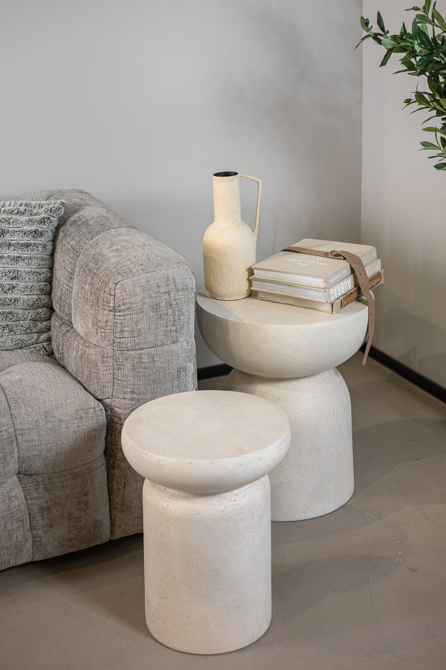 סטול בריסל בגוון אבן. סטול פיסולי, מעוצב מקשה אחת בגימור חלק.