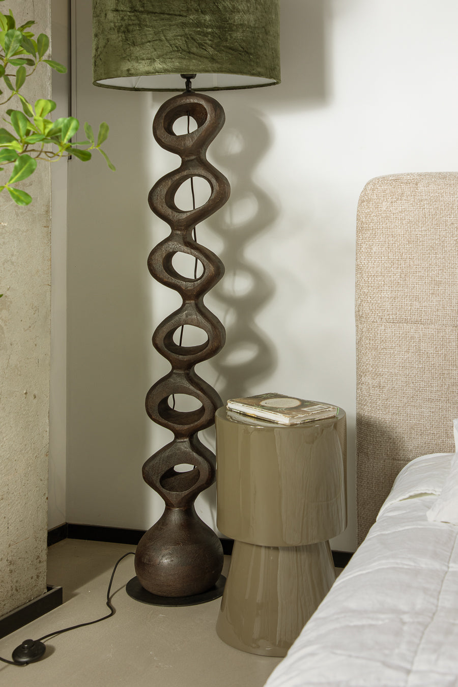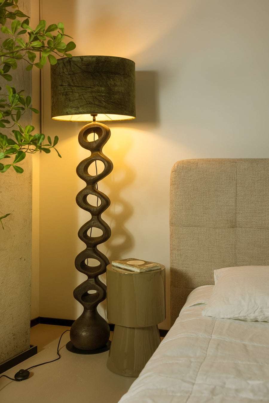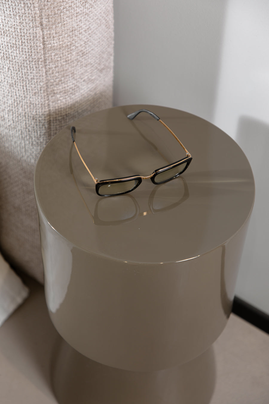 סטול גלוסי בגוון ירוק. שולחן צד בגימור קורץ המכניס טאץ' של גלאם וצבע בחלל האירוח.