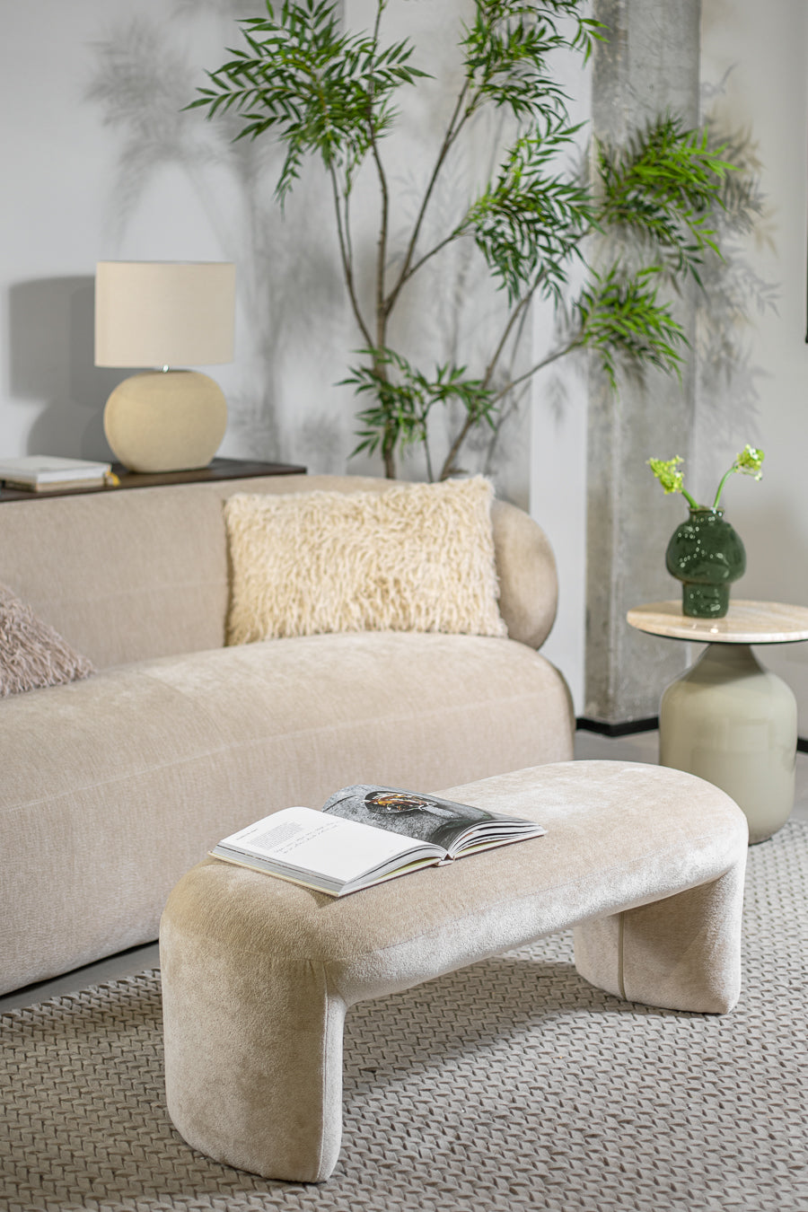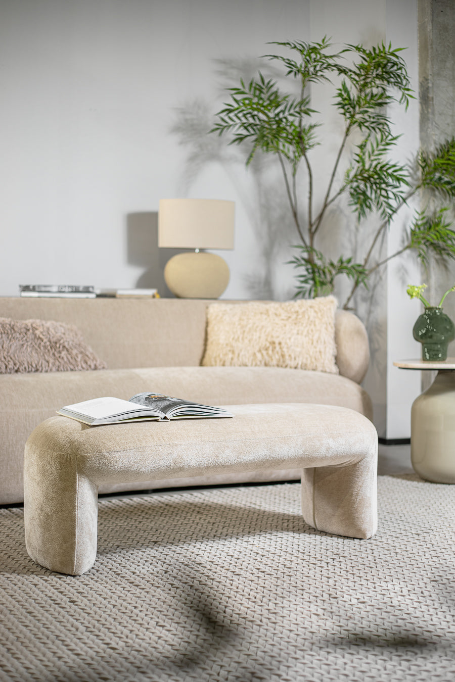 ספסל מדויק במרקם המוסיף סטייל עכשווי לעיצוב חדר השינה או הסלון.