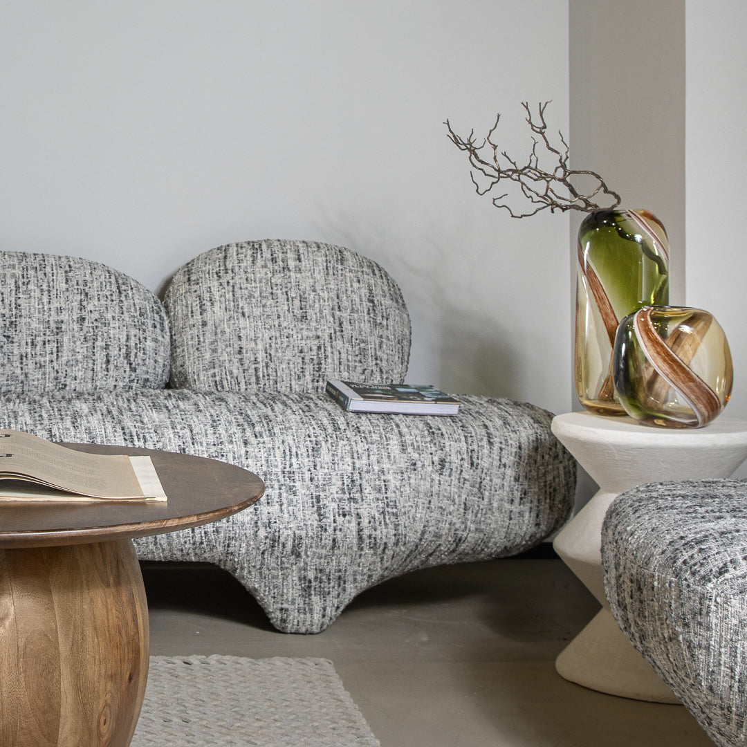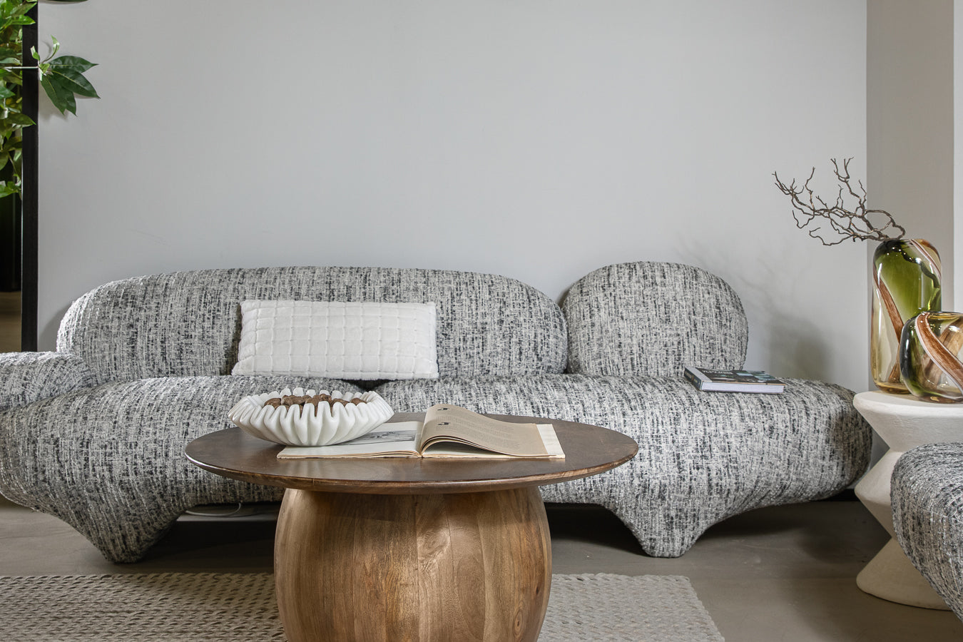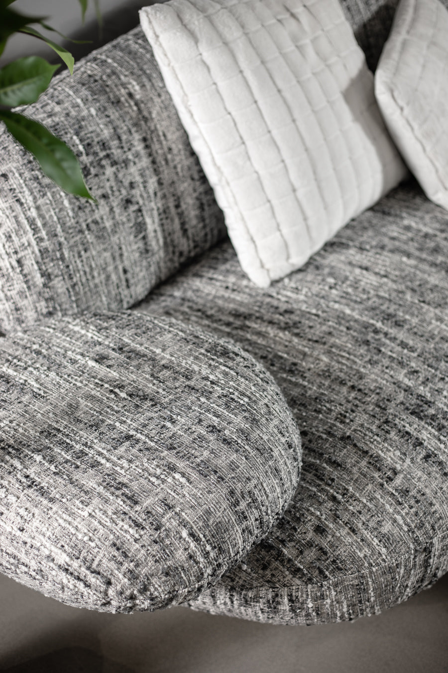 ספת אירוח אינגריד בגוון אפור מלאנז'. ספה בעיצוב הרמוני, המתחקה אחר התגבשות צורות אמורפיות לכדי יחידה הומוגנית אחת.