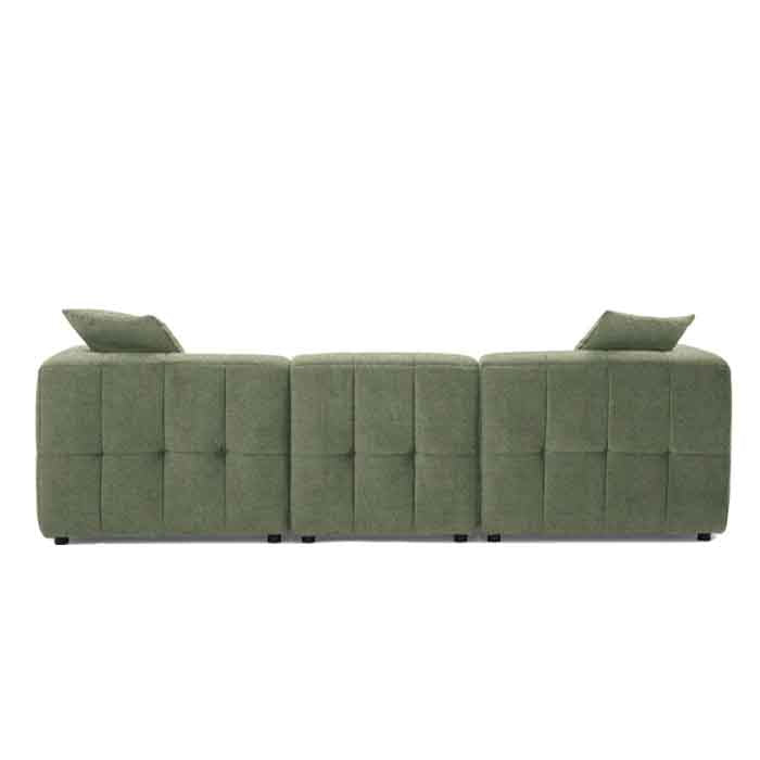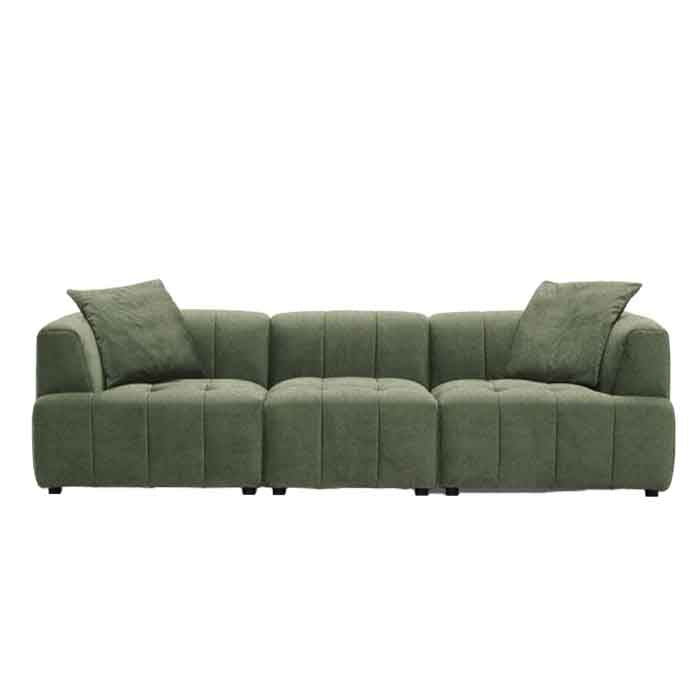 ספת אירוח לוק בגוון ירוק. ספת סלון מרשימה בפרופיל מלבני, מעוצבת משענת גב נמוכה, היוצרת מסגרת עיטוף לקו מסעדי הידיים.