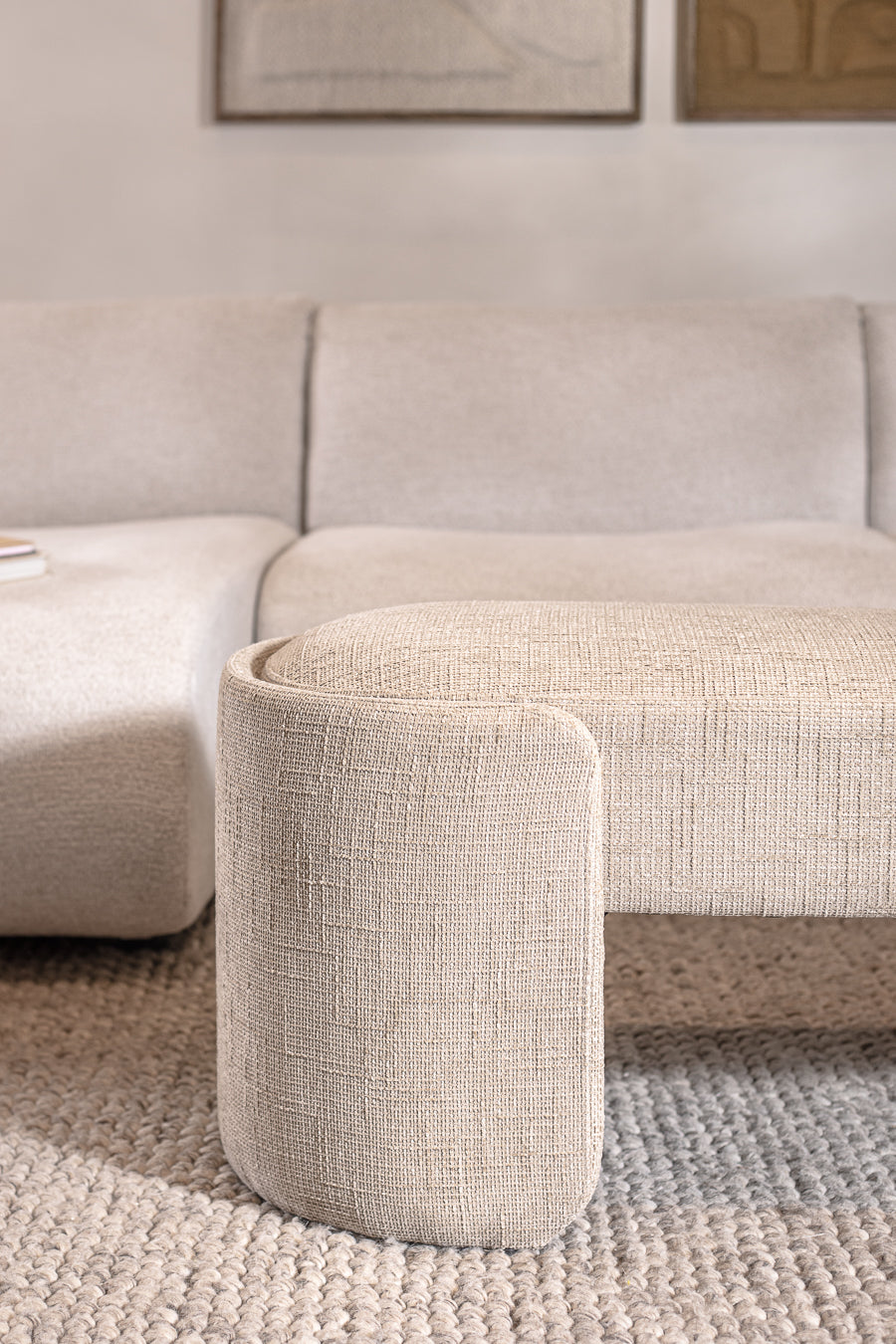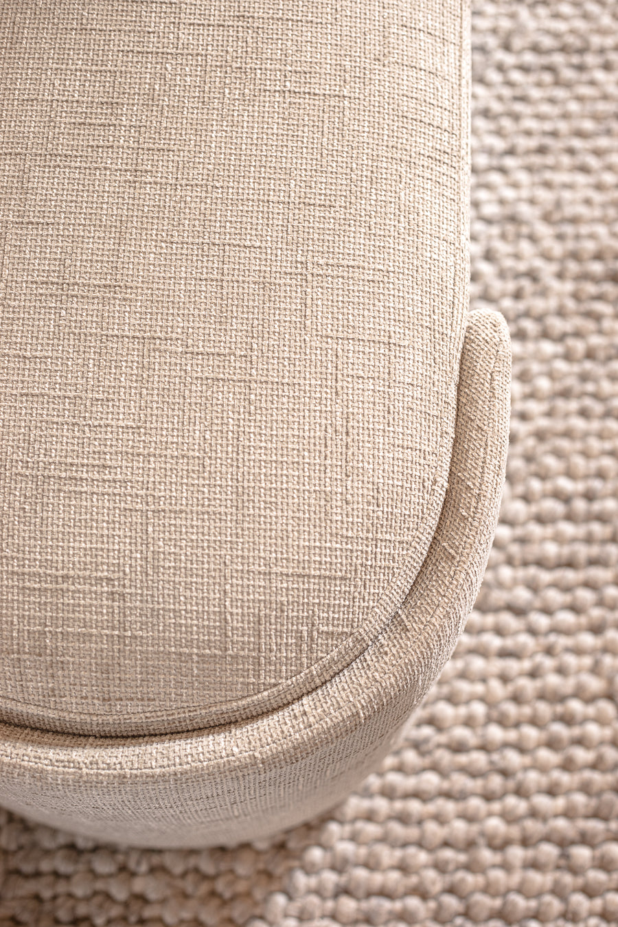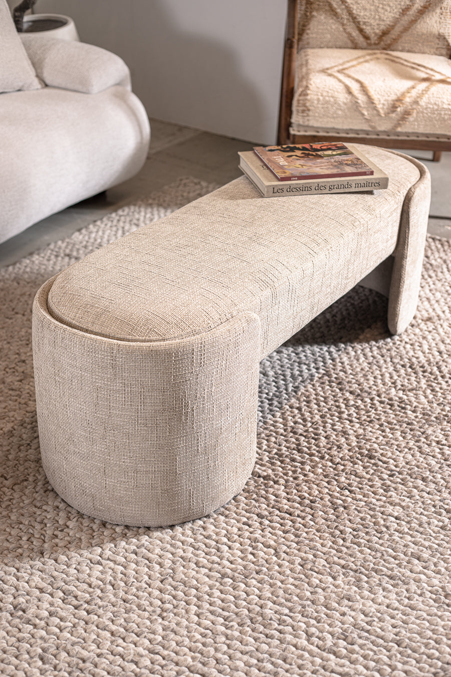 ספסל בגוון בהיר. ספסל אירוח אלגנטי בגימור אליפטי-עגול.