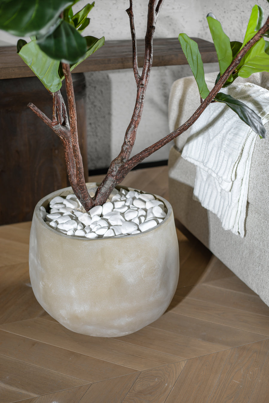 פלנטר צמנטו בגוון אפור. בית עציץ מעוצב גוף אמורפי בגימור טבעי.