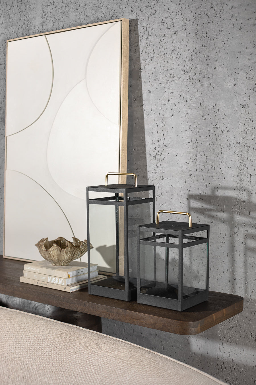 עששית אייקון פרופיל מלבני ממוסגרת מתכת בצבע שחור. עששית מעוצבת חלונות זכוכית שקפה וידית נשיאה. אקססורי קלאסי לאיבזור מעוצב באינטרפטציה עכשווית.