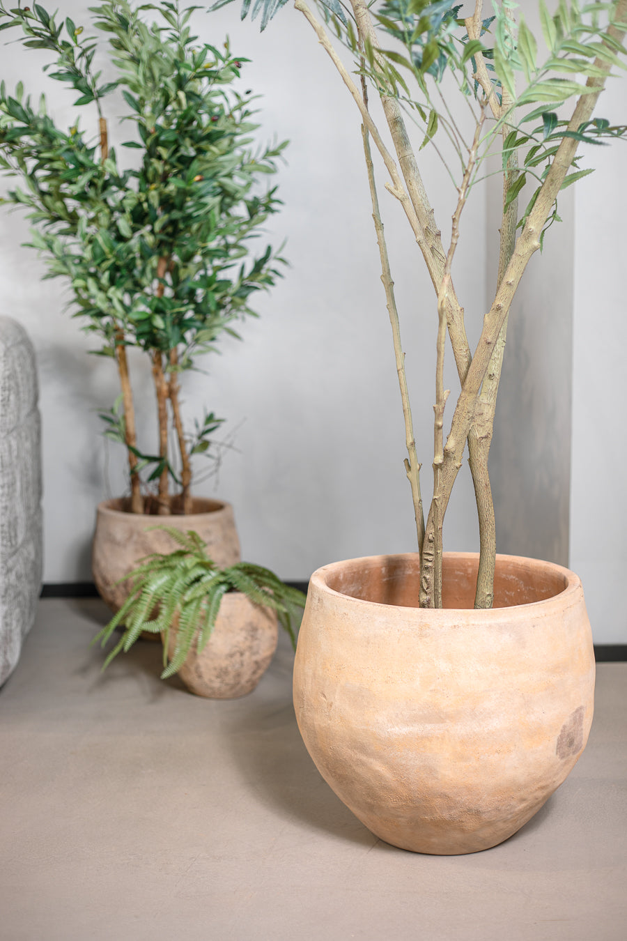 פלנטר נבאדה קעור בגוון בהיר. בית עציץ פיסולי בגימור מעובד.
