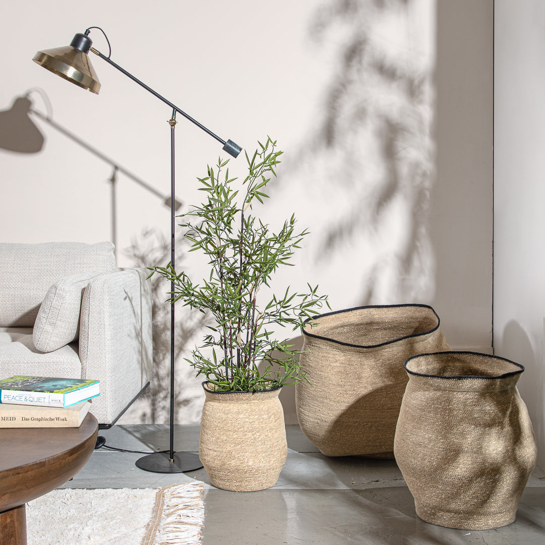 פלנטר עשב ים סילואט ארוך בדיגום קלאסי. בית עציץ מיוחד לאוהבי העיצוב בטאץ' טבעי שאינו משתלט.