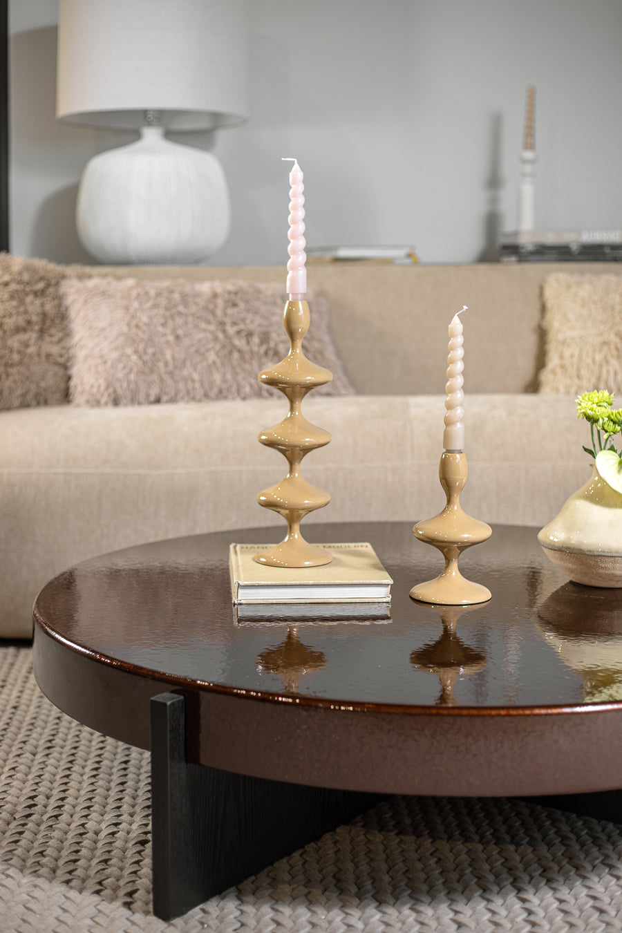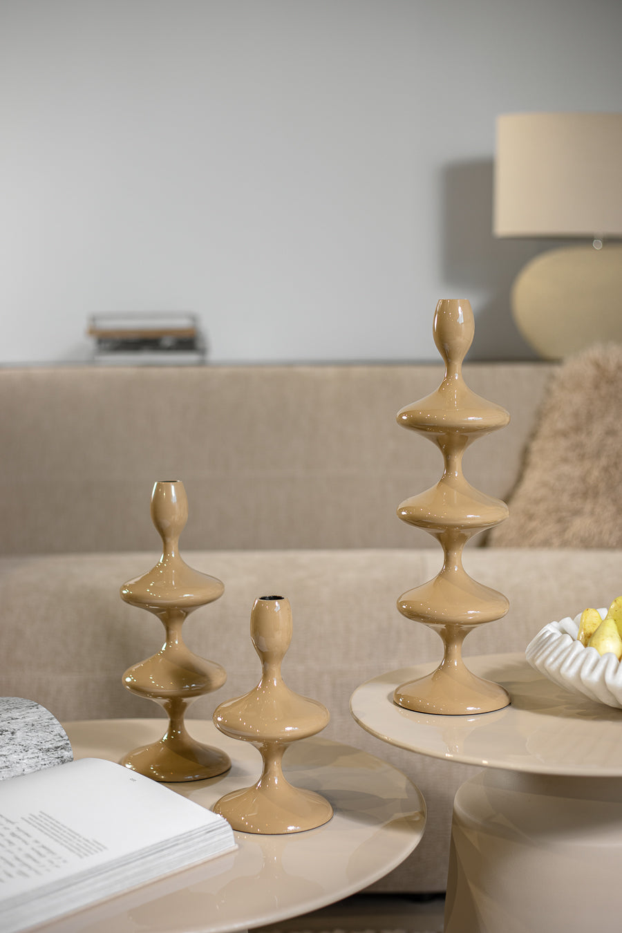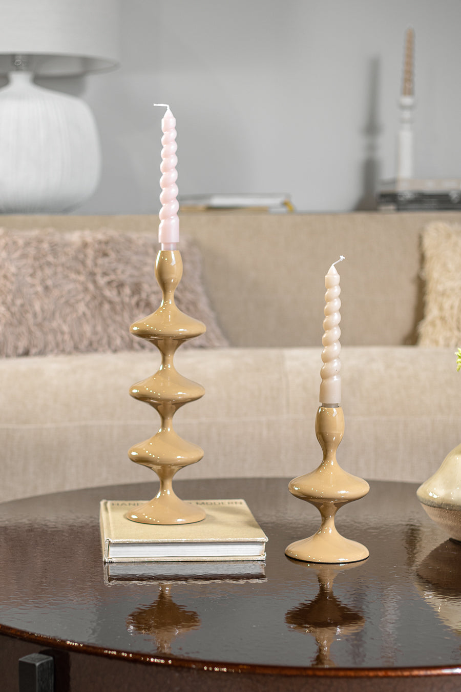 פמוט אייקון פרופיל גלי בצבע בז'. פמוט מעוצב רוחב משתנה בגימור מבריק.